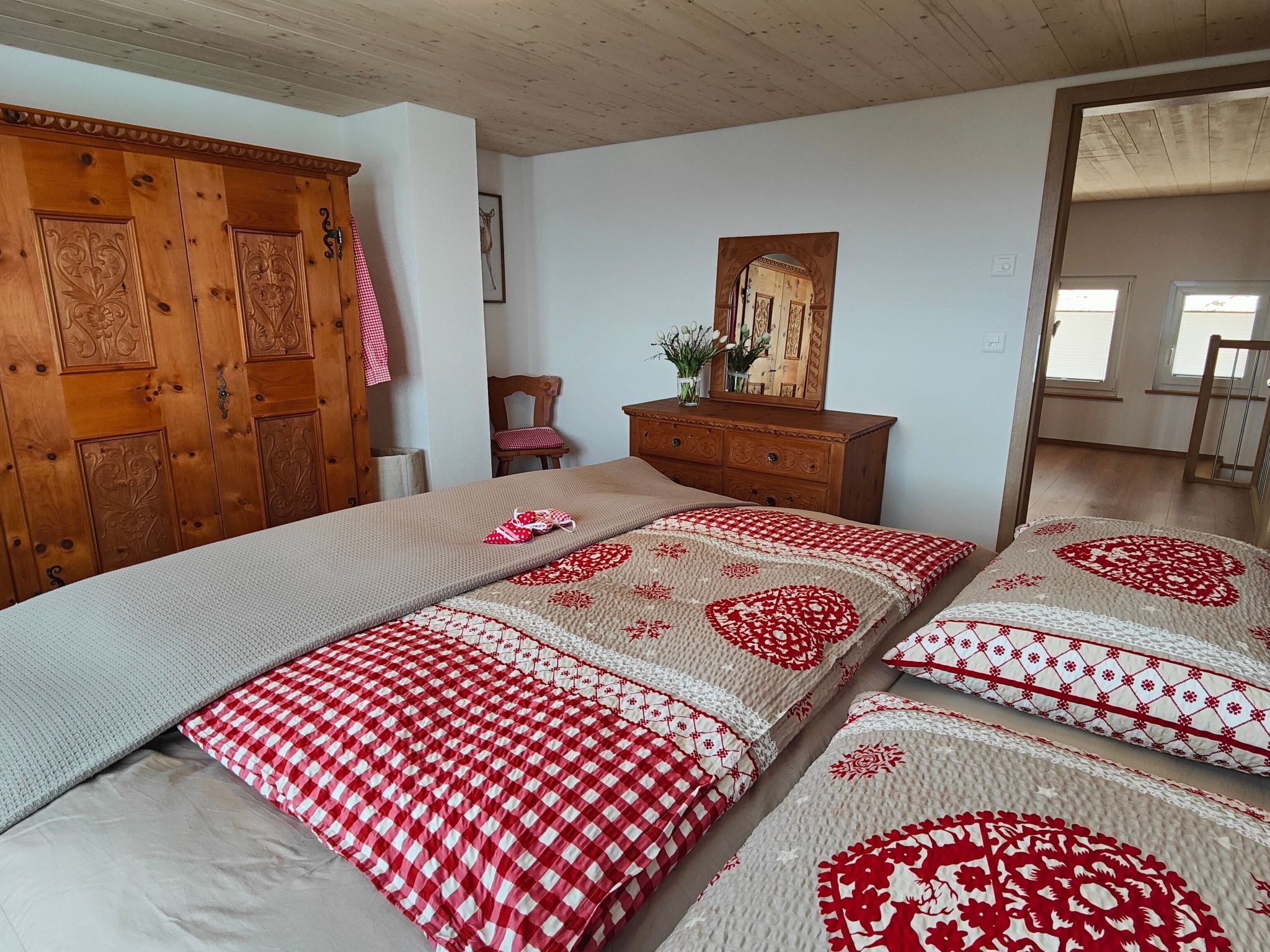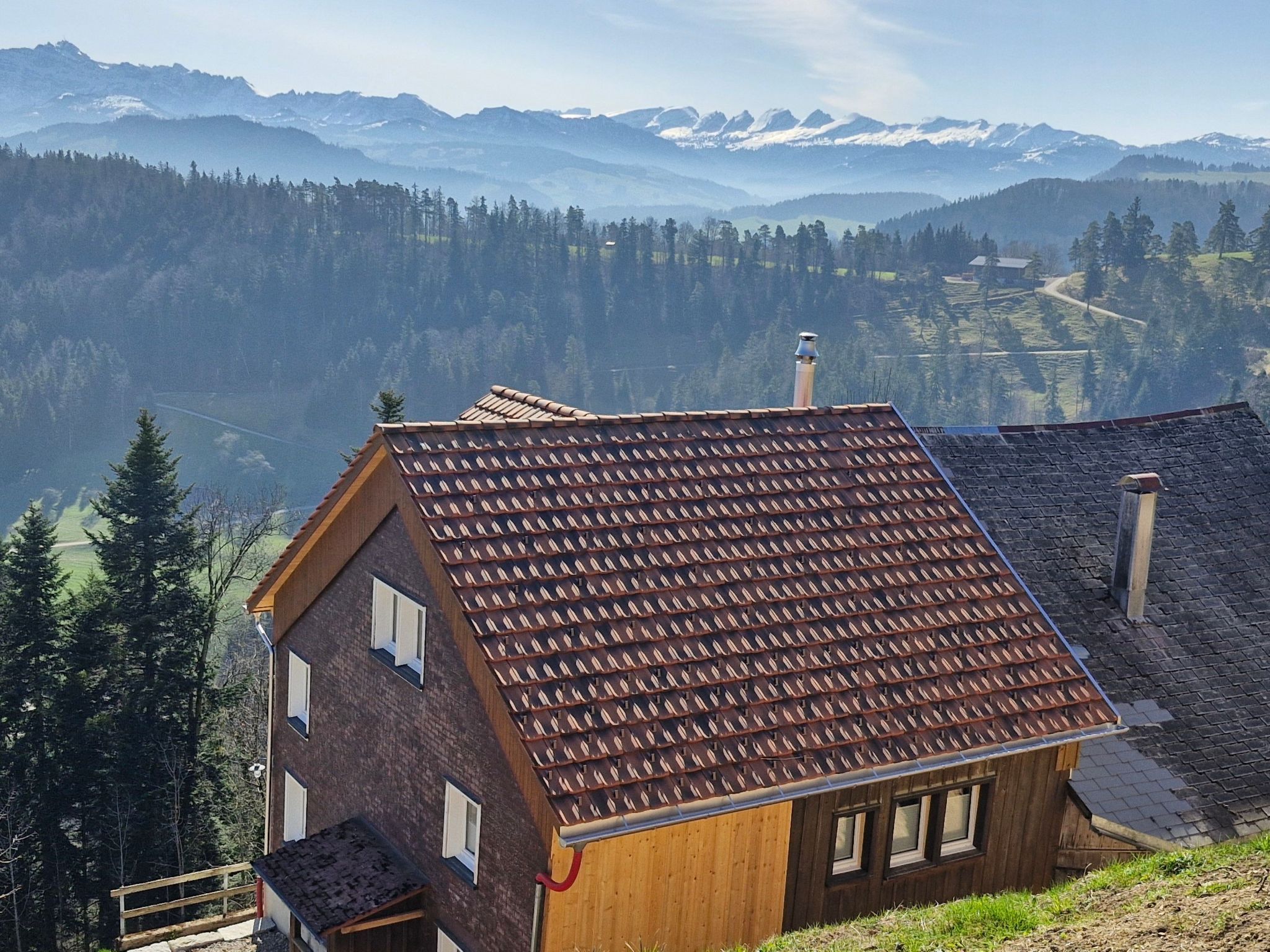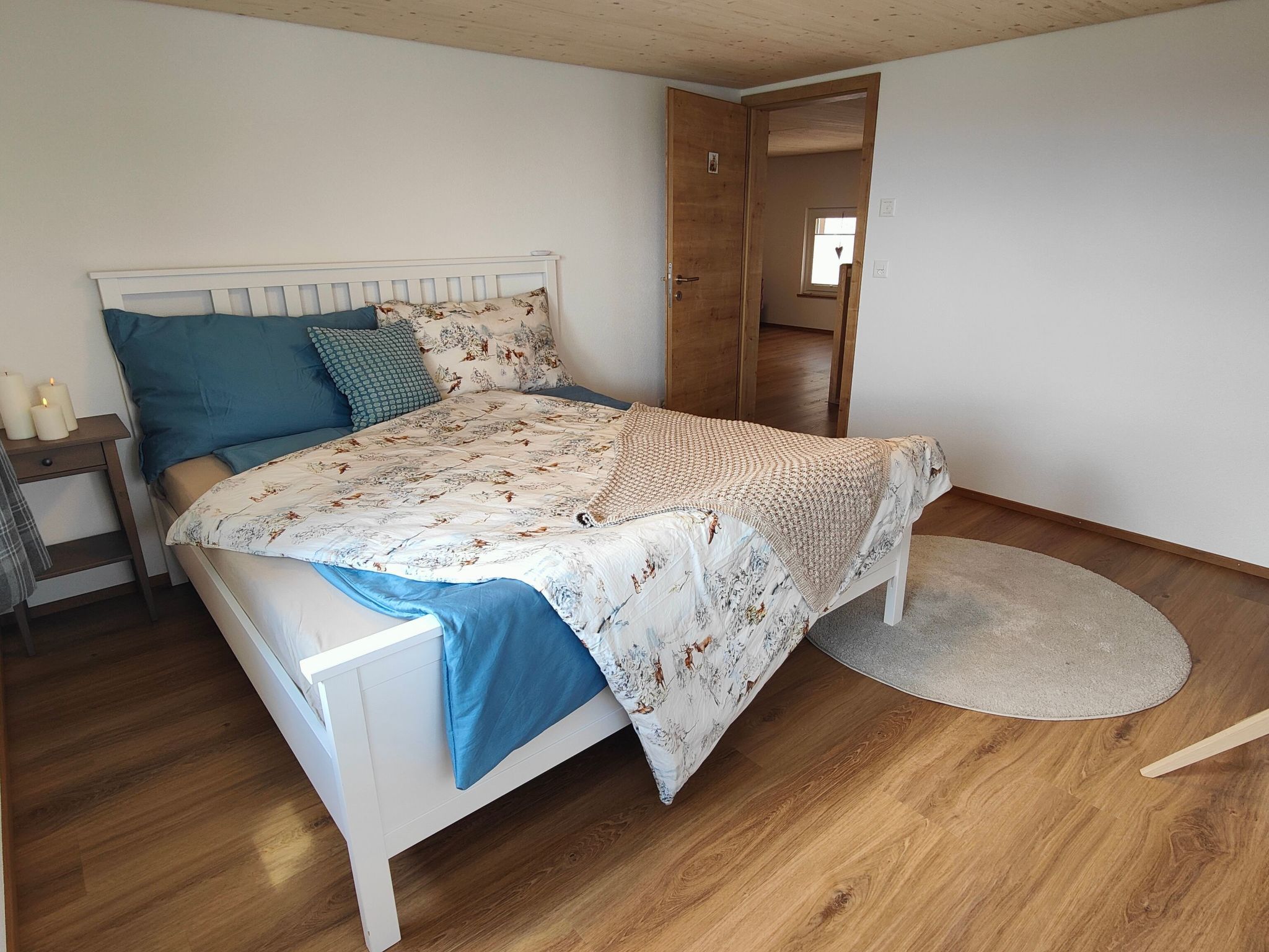 Entdecken Sie das idyllische Ferienhaus, 1000m über Meer oberhalb der Gemeinde Mosnang im Kanton St. Gallen. Eine Oase der Ruhe und Entspannung, wo sich Fuchs und Hase Gute Nacht sagen, für bis zu 8 Gäste. Dieses charmante Refugium, liebevoll eingerichtet im Landhausstil, ist der ideale Ausgangspunkt für Wanderungen und Erlebnisse in der malerischen Natur, umgeben von Bergen und Tälern. Die Kombination aus traditionellem Charme und durchdachten Annehmlichkeiten macht es zu einem perfekten Ort für Familien oder Freunde, die eine Auszeit vom Alltag suchen. Im Inneren erwartet Sie ein gemütliches Ambiente mit einer voll ausgestatteten Küche, die einen Induktionsherd, eine Kapsel-Kaffeemaschine und einen Wasserkocher umfasst. Für Gemütlichkeit an kühleren Abenden sorgt der Cheminéeofen, während die Fußbodenheizung in allen Räumen für angenehme Wärme sorgt. Das Ferienhaus bietet drei Schlafzimmer und ein Badezimmer mit Dusche, ideal für einen komfortablen Aufenthalt. Der Außenbereich lädt mit einem Gartensitzplatz und Grillstelle zum Verweilen und Entspannen in der Natur ein. Es ist ein wunderschöner Ort, um die Ruhe der Umgebung zu genießen und sich vom Trubel des Alltags zu erholen. Der Garten bietet ausreichend Platz für große und kleine Gäste und lädt zu gemeinsamen Stunden unter freiem Himmel ein. Die Umgebung des Ferienhauses ist geprägt von der atemberaubenden Landschaft des Toggenburgs mit seinen Bergen und Tälern. Nur 5 km mit dem Auto (oder rund 2km zu Fuss auf dem Wanderweg) entfernt, liegt die nächstgelegene Ortschaft Mosnang mit Lebensmittelgeschäften, wo Sie alles für den täglichen Bedarf finden. Direkt vor der Haustür lädt Sie ein Wander- und Bikeweg zu aktiven Erkundungstouren ein. Die Kombination aus natürlicher Schönheit und Nähe zur Zivilisation bietet das Beste aus beiden Welten. Dieses Ferienhaus in Mosnang ist ein wunderbarer Rückzugsort, wo Sie eine unvergessliche Zeit inmitten der Natur verbringen können. Hier finden Sie die perfekte Mischung aus Erholung und Aktivität, abseits vom Trubel, aber dennoch mit allem Komfort und den Annehmlichkeiten, die einen Aufenthalt so angenehm machen. Lassen Sie sich von der Schönheit der Region verzaubern und genießen Sie unvergessliche Momente in diesem einzigartigen Feriendomizil. Gut zu wissen: Das Ferienhaus Schlosshöchi befindet sich auf 1000m über Meer. Wenn Schnee liegt, ist das Haus ausschliesslich zu Fuss erreichbar. Der Autoabstellplatz liegt dann in 600m Entfernung. Die Schneeräumung ist nicht gewährleistet. Basisinformationen - Erlaubte Haustiere: keins - Unterkunftstyp: Ferienhaus - befindet sich in: nichts zutreffend - Art d. Gebäudes: Einfamilienhaus - Gesamtanzahl d. Stockwerke im Gebäude über EG: 1 - Grundstücksfläche: 150 m² - Baujahr: 1725 - letzte umfassende Renovierung: 2024 - freistehend - keine Einsicht von der Straße - keine Jugendgruppen - Nichtraucherunterkunft - Schlafzimmeranzahl: 3 - Badezimmeranzahl: 1 Top Merkmale - WLAN - Klimaanlage: keine - Heizung: überall - Fußbodenheizung: überall - Terrasse - Garten: zur alleinigen Nutzung - Private PKW-Stellplätze insgesamt für diese Unterkunft: 2 - ㄴ davon Garagenstellplätze: keinen - ㄴ davon Carport-Stellplätze: keinen - ㄴ davon private Außenstellplätze: 2 - Entfernung kostenfreie Gemeinschaftsparkplätze oder Parken an der Straße: 4,0 km - Entfernung öffentlicher Parkplatz: 4,0 km Schlafen im Wohnbereich - Schlafsofa 2 Personen Schlafzimmer 1 - Doppelbett (größer als 1,80 m Breite) Schlafzimmer 3 - Doppelbett (1,80m Breite) Schlafzimmer 5 - 2x Einzelbett Badezimmer Badezimmer 1 - Dusche - Waschbecken - Toilette - Föhn - Tageslicht Kochen/Wohnen - Kaffeemaschine: Kapsel-Kaffeemaschine - Kühl-/Gefrierschrank: Gefrierfach, Kühlschrank - Herd: Induktionsherd - Dunstabzugshaube - Backofen - Wasserkocher - Geschirrtücher - Größe der Küche: 10 m² - Anzahl Esstische: 1 - Gesamtzahl Sitzplätze: 8 - Anzahl Wohnzimmer: 1 - Kamin Entertainment - Fernseher: TV - DVD-Player - Gesellschaftsspiele für Erwachsene Für Kinder - Kinderstuhl Hauswirtschaft - Wäscheständer - Staubsauger - Reinigungsprodukte Nachhaltigkeit - Wassersparende Wasserhähne (überall) - Wassersparende Dusche - Hausisolierung Außenbereich - Outdoormöbel - Grill: Grill Umgebung - Aussicht: Berg, Garten, Wald, Wiese, Tal - nächstgelegene Ortsmitte: 4,0 km - Lebensmittelhandel: 4,0 km - Cafés/Restaurants: 4,0 km - Bahnhof: 7,0 km - Autobahn: 16,0 km - nächste Haltestelle ÖPNV: 4,0 km - Öffentliches Schwimmbad: 12,0 km - Radwanderweg (touristisch): 1 m - Wanderweg: 1 m Besonderheiten - Berghütte - Landgut - Bauernhaus