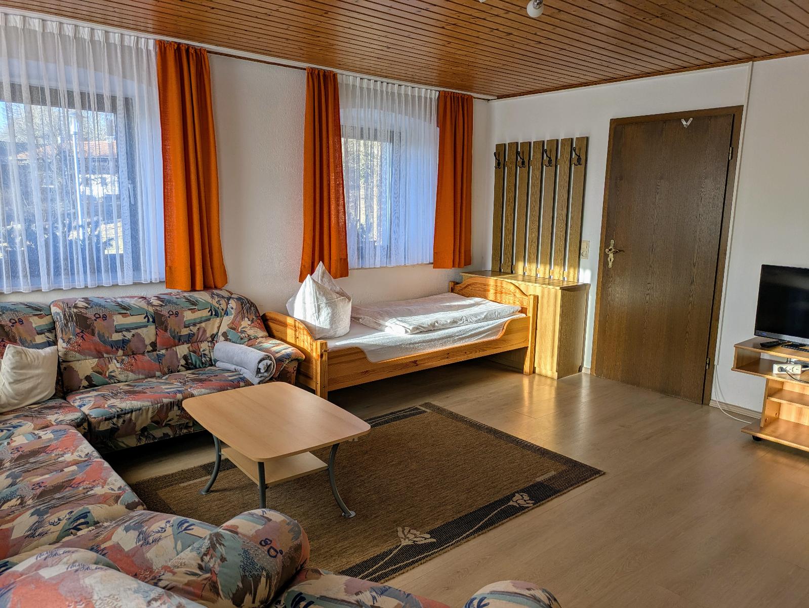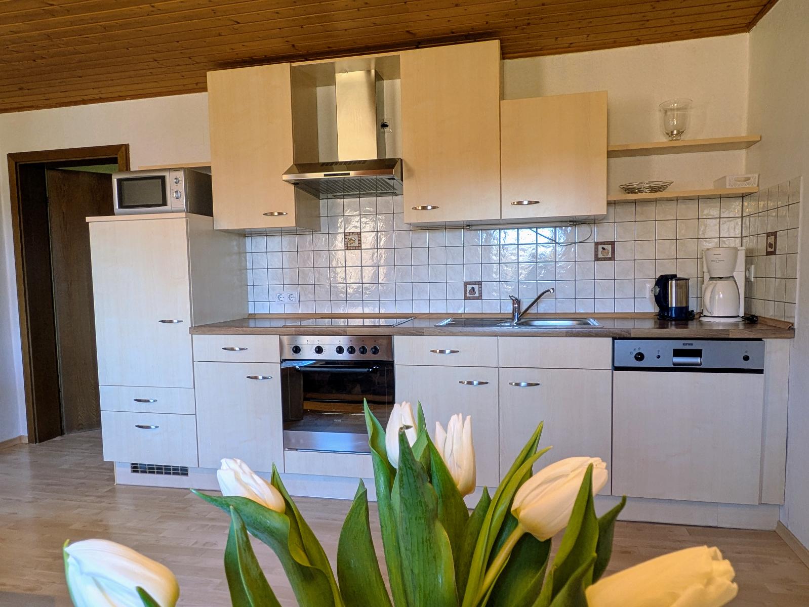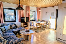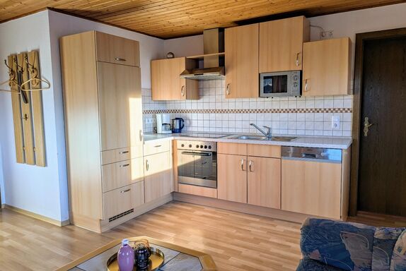 Gemütliche Ferienwohnung mit 1 Wohnraum (Couchgarnitur, Essecke, Sat-TV, Küchenzeile mit Spülmaschine), 1 geräumiges Schlafzimmer mit Doppelbett und 1 Einzelbett , 1 Dusche/WC, 1 Balkon mit traumhaften Ausblick zum zum Großen Arber. Genau das Richtige für Ihren Urlaub im Bayerischen Wald