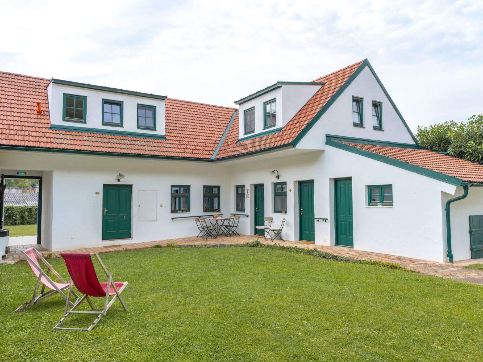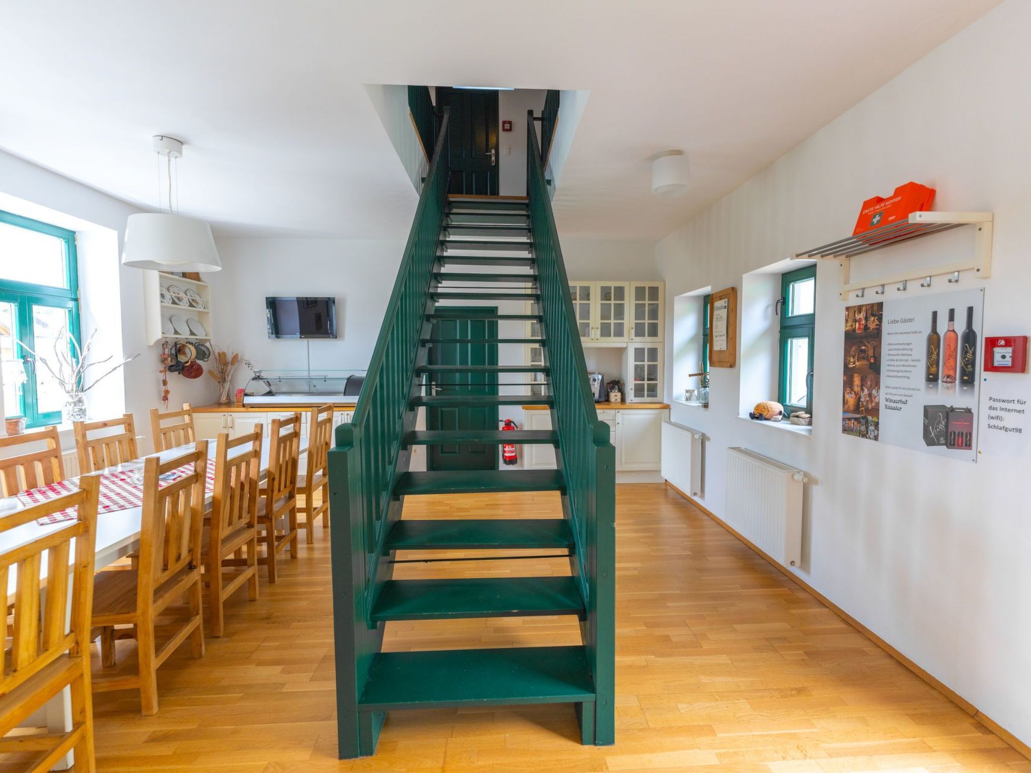 Entdecken Sie das Schlafgut Küssler, ein Juwel im Herzen des ältesten Weinortes Österreichs. Dieses liebevoll renovierte Weinviertler Haus, erbaut im Jahre 1930 und meisterhaft im Jahr 2012 restauriert, vereint Tradition mit modernem Komfort. Die Verbindung aus historischem Charme und der Leidenschaft für Wein lädt sowohl Tages- als auch Langzeiturlauber und Geschäftspersonen ein, in einem außergewöhnlichen Ambiente Ruhe und Erholung zu finden. Innen besticht das Schlafgut durch seine hervorragende Ausstattung: fünf helle, freundliche Zimmer bieten Platz für bis zu 10 Personen. Jedes Zimmer ist gemütlich eingerichtet inklusive Schreibtisch, Sessel, TV und WLAN, wobei eines der Zimmer zusätzlich mit einer eigenen Weinbar aufwartet. Die gemütliche 'Stubn', eine bestens ausgestattete Küche sowie der Zugang zum urigen Weinkeller komplementieren das exklusive Wohnerlebnis. Der Außenbereich des Schlafguts lädt zum Verweilen und Entspannen ein. Ein wunderschön gestalteter, nicht einsehbarer Innenhof mit einladender Sonnenterrasse bietet ideale Bedingungen für erholsame Stunden im Freien. Die malerische Umgebung des Schlafguts ist geprägt durch ausgedehnte Weinberge und das nahezu unberührte Naturschutzgebiet der March-Auen. Die ruhige Lage in einer Sackgasse verspricht Entspannung pur, gleichzeitig ist das Herz Wiens nur über 30 Kilometer entfernt, Bratislava sogar weniger als 40 Kilometer. Radfahrer und Golfspieler finden hier ein Paradies vor: Ein weitreichendes Radnetz und zwei große Golfanlagen befinden sich in unmittelbarer Nähe. Ausflugsmöglichkeiten wie Schlösser, Tierparks und der Nationalpark Donauauen bereichern Ihr Urlaubserlebnis. Lassen Sie sich vom Schlafgut Küssler verzaubern – ein Ort, der durch seine einzigartige Verbindung von historischem Flair, gelebter Gastfreundschaft und tief verwurzelter Weintradition besticht. Hier finden Sie die Ruhe und Erholung, die Sie suchen, umgeben von einer atemberaubenden Kulisse, die Ihre Sinne beleben wird. Ob für einen erholsamen Urlaub, eine Geschäftsreise oder eine besondere Feier, hier erleben Sie unvergessliche Momente inmitten der idyllischen Weinlandschaft. Basisinformationen - Erlaubte Haustiere: 1 - erlaubte Hundegröße: groß (über 60 cm) - Grundstücksfläche: 700 m² - letzte umfassende Renovierung: 2012 - keine Einsicht von der Straße - Nichtraucherunterkunft - Schlafzimmeranzahl: 5 - Badezimmeranzahl: 4 Top Merkmale - WLAN - Heizung: überall - Terrasse - Garten: zur alleinigen Nutzung - Private PKW-Stellplätze insgesamt für diese Unterkunft: 1 - ㄴ davon Garagenstellplätze: keinen - ㄴ davon Carport-Stellplätze: keinen - ㄴ davon private Außen­stellplätze: 1 Schlafen Schlafzimmer 1 - Doppelbett (1,80m Breite) - Schlafzimmer abdunkelbar Schlafzimmer 3 - Doppelbett (1,80m Breite) - Schlafzimmer abdunkelbar Schlafzimmer 5 - 2x Doppelbett (1,80m Breite) - Schlafzimmer abdunkelbar Schlafzimmer 7 - Doppelbett (1,80m Breite) - Schlafzimmer abdunkelbar Schlafzimmer 9 - Doppelbett (1,80m Breite) - Schlafzimmer abdunkelbar Badezimmer Badezimmer 1 - Dusche - Waschbecken - Toilette - Tageslicht Badezimmer 3 - Dusche - Waschbecken - Toilette - Tageslicht Badezimmer 5 - Dusche - Waschbecken - Toilette - Tageslicht Badezimmer 7 - Dusche - Waschbecken - Toilette - Tageslicht sanitäre Einrichtungen in der Nähe - Toilette Kochen/Wohnen - Kaffeemaschine: Espressokanne, Kaffeemaschine - Kühl-/Gefrierschrank: Gefrierfach, Tiefkühlschrank, Kühlschrank - Herd: Gasherd, Herd - Backofen - Toaster - Mikrowelle - Wasserkocher - Spülmaschine - Anzahl Esstische: 1 - Gesamtzahl Sitzplätze: 10 - Anzahl Wohnzimmer: 1 - Wohnzimmer abdunkelbar Entertainment - Fernseher: TV, Kabel-TV, Sat.-TV - DVD-Player - Spielekonsole - Musikanlage - Radio - CD-Player Hauswirtschaft - Wäschetrockner: zur gemeinschaftlichen Nutzung im Gebäude - Staubsauger Außenbereich - Grill: Grill Umgebung - Aussicht: Berg, Meer/See, Garten, Wald, Wiese - Lebensmittelhandel: 2,0 km - Cafés/Restaurants: 500 m - Bahnhof: 1,0 km - Flughafen: 35,0 km - Autobahn: 20,0 km - See: 1,0 km - Fahrrad-Verleih: 1 m - Berg-/Seilbahn: 50,0 km Besonderheiten - Anglerfreundlich - Inmitten der Natur gelegen