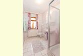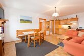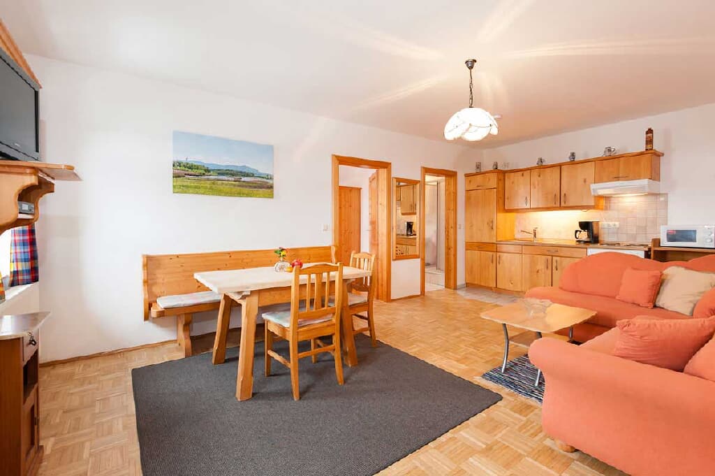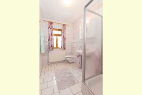 gemütliche Fewo mit 60qm, Wohnküche mit Essecke und Rundcouch, 1 Schlafzimmer, 1 Gitterbett (Rundcouch kann zum Schlafen für 1 Person ausgezogen werden), Du/WC, TV, WLAN