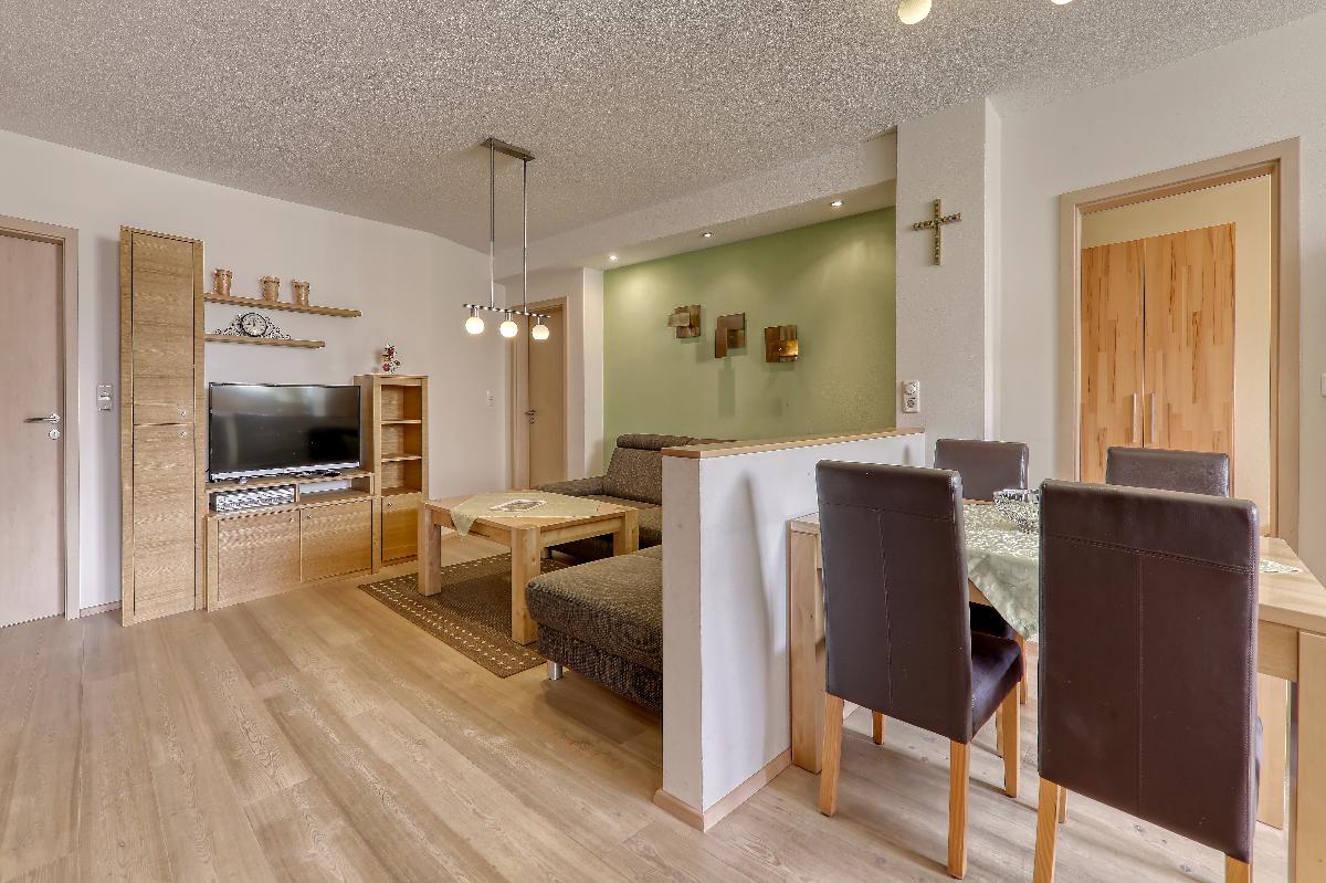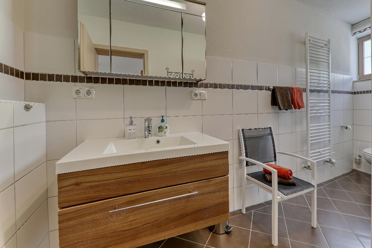 Komfortable, liebevoll ausgestattete Ferienwohnung, mit kompett eingerichteter Küche, Wohnraum mit Sat-TV, drei Schlafzimmern Bad / WC und Dusche / WC