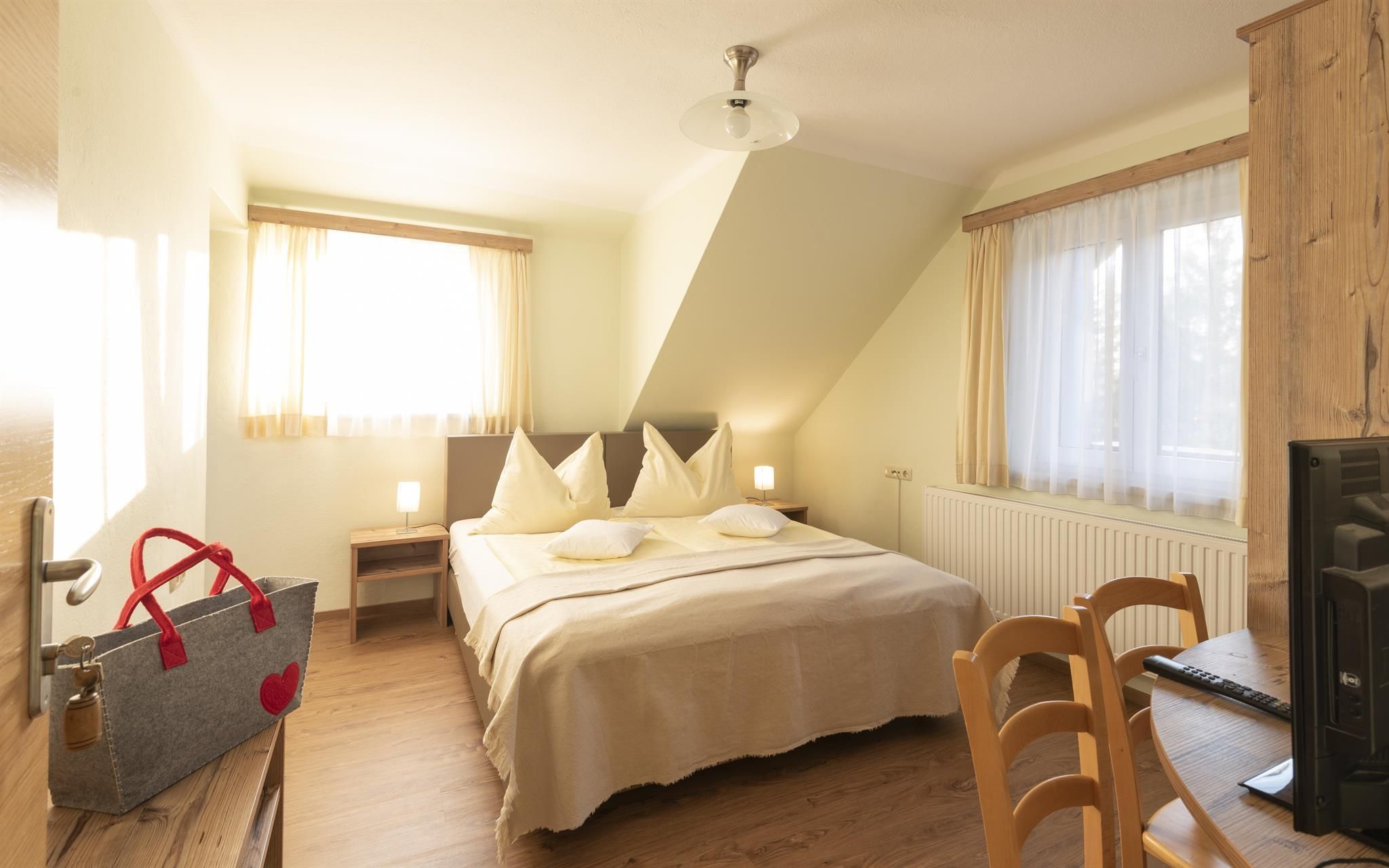 Die Doppelzimmer befinden sich im Haupthaus und in der angrenzenden Frühstückspension. Im Gasthaus (Haupthaus) sind unsere Zimmer mit Vollholzmöbel, SAT- TV, Kräuterkissen und freies W-Lan ausgestattet. Und auch in der Frühstückspension finden Sie herrliche gemütliche Zimmer (wurden im Jahr 2017 neu gestaltet).
