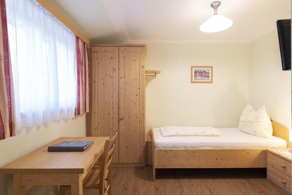 Sie sind in einer Gruppe unterwegs, aber haben gerne ihr eigenes Zimmer? Oder haben sich ganz bewusst für einen Urlaub alleine entschieden? Im Gasthaus sowie in unserer Frühstückspension haben wir je zwei Einbettzimmer mit WC und Dusche, SAT-TV und freies W-Lan zur Verfügung. Die wundervolle Ausstattung der Einzelzimmer und das große Bett (140 x 200 cm) garantieren einen erholsamen Schlaf