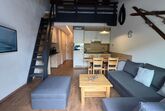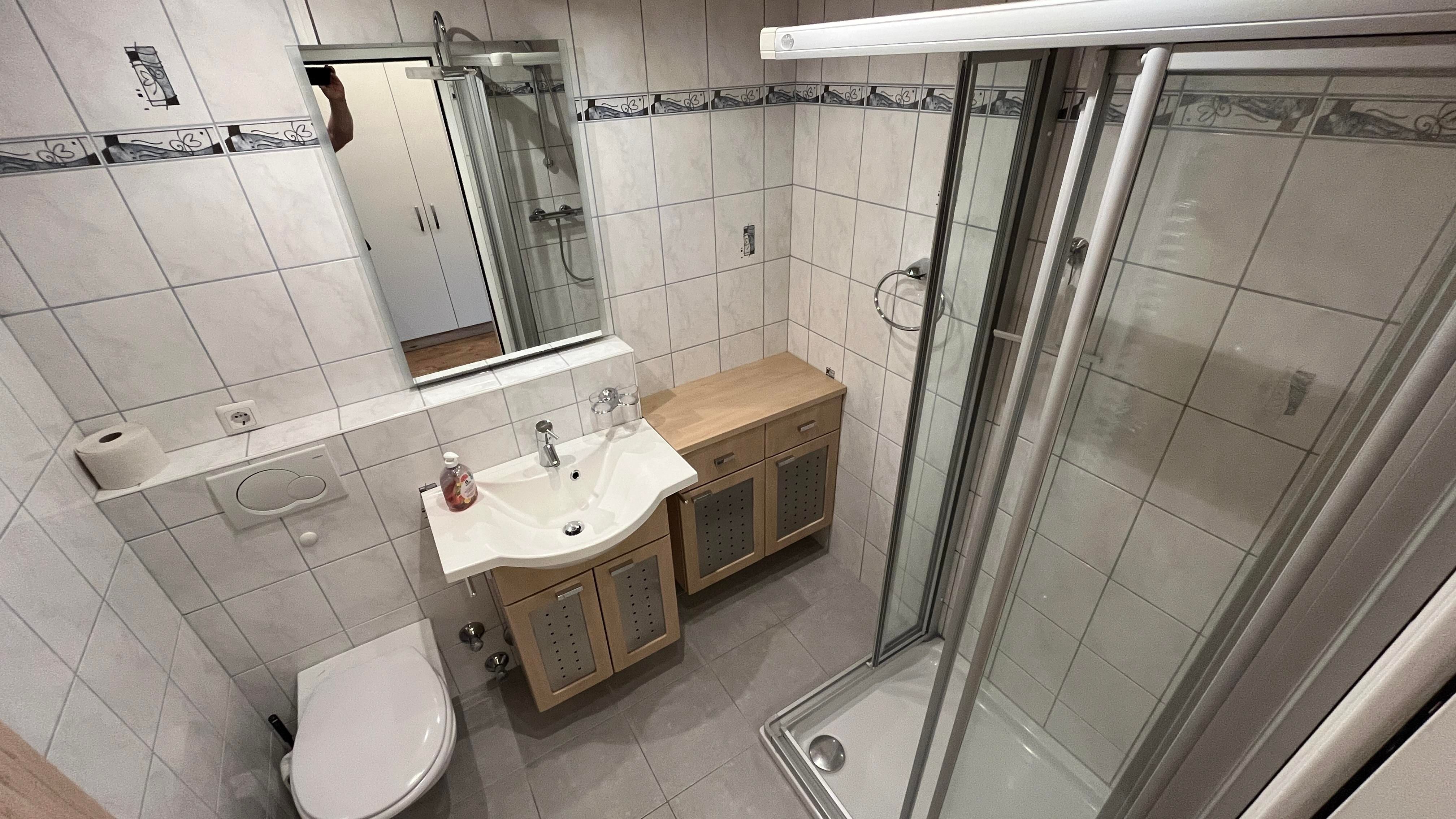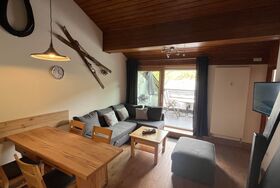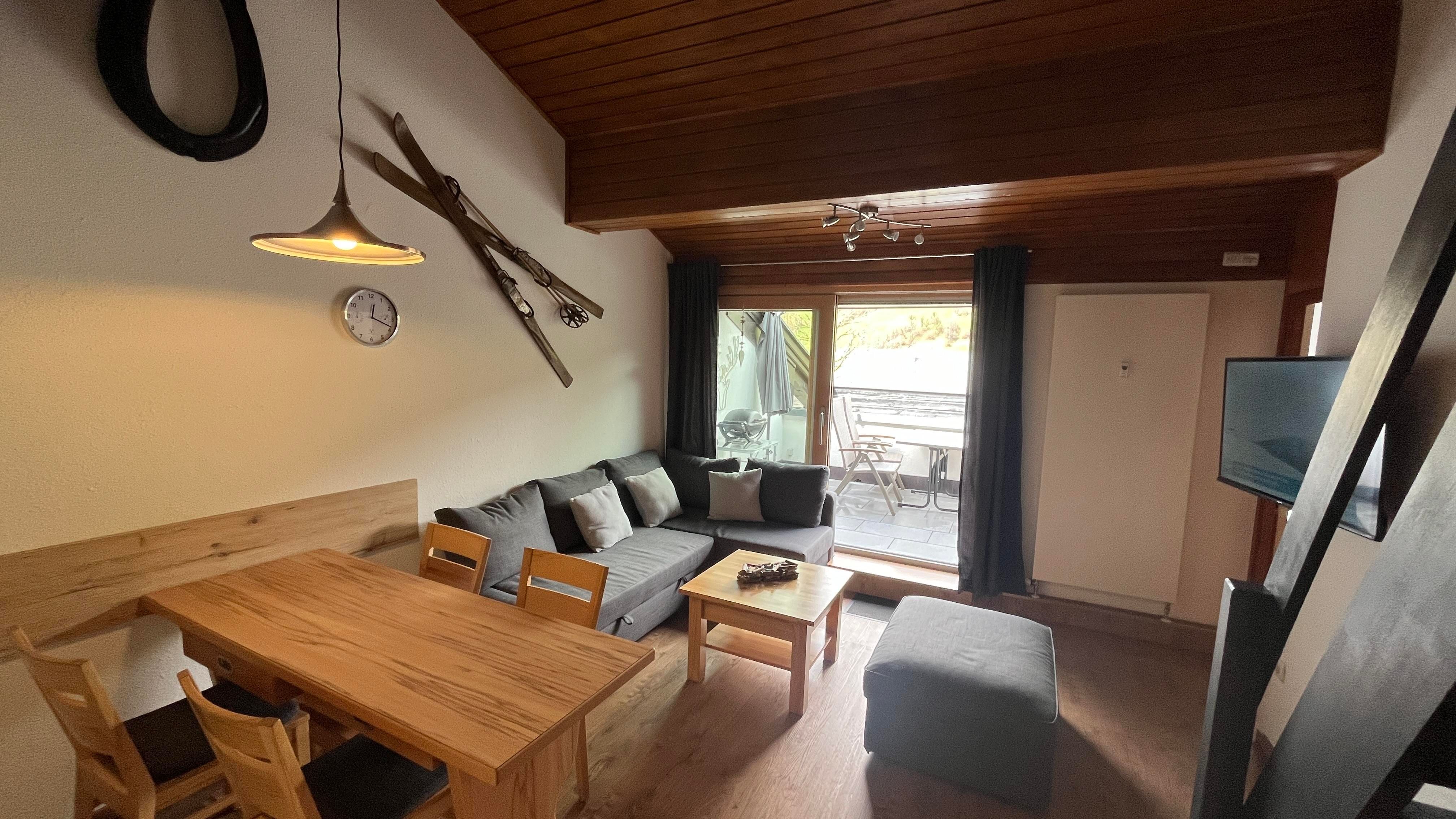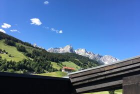 Schöne Ferienwohnung mit wundervollem Blick von der Dachterrasse auf das Steinerne Meer und auf das Hochkönig-Gebirgsmassiv. Die Wohnung verfügt über 1 Schlafzimmer mit Doppelbett und einen Wohnraum mit Sofa, TV, Küchenzeile und Essecke. Auf der offenen Galerie im Wohnraum befinden sich zwei Einzelbetten. Bad/WC, Diele mit Garderobe und Schränken.