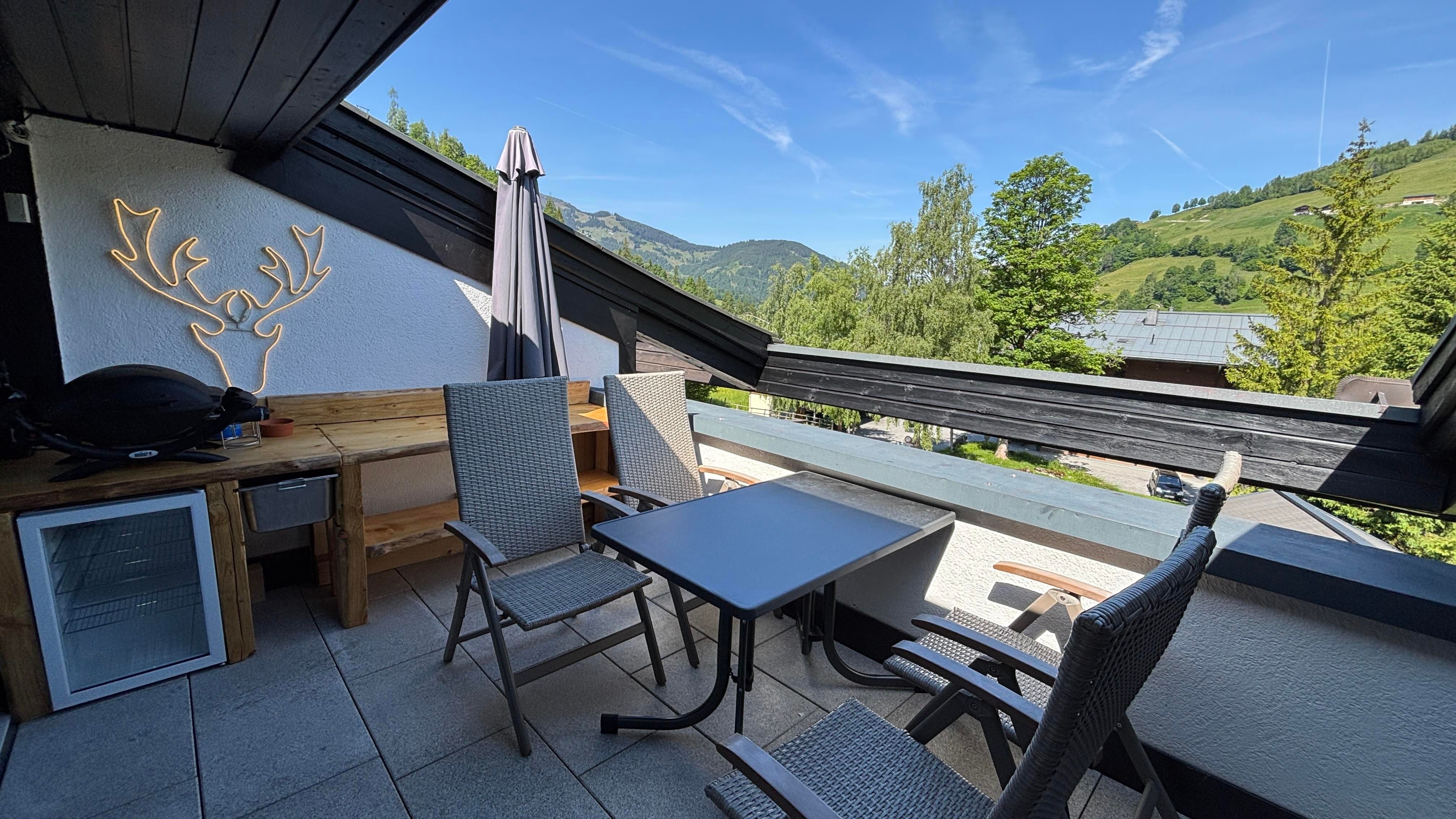 Im Dachgeschoss das Appartement 'Selbhorn' mit traumhaftem Ausblick von der Dachterrasse und im Erdgeschoss das Appartement 'Aberg' mit schöner großer Terrasse.