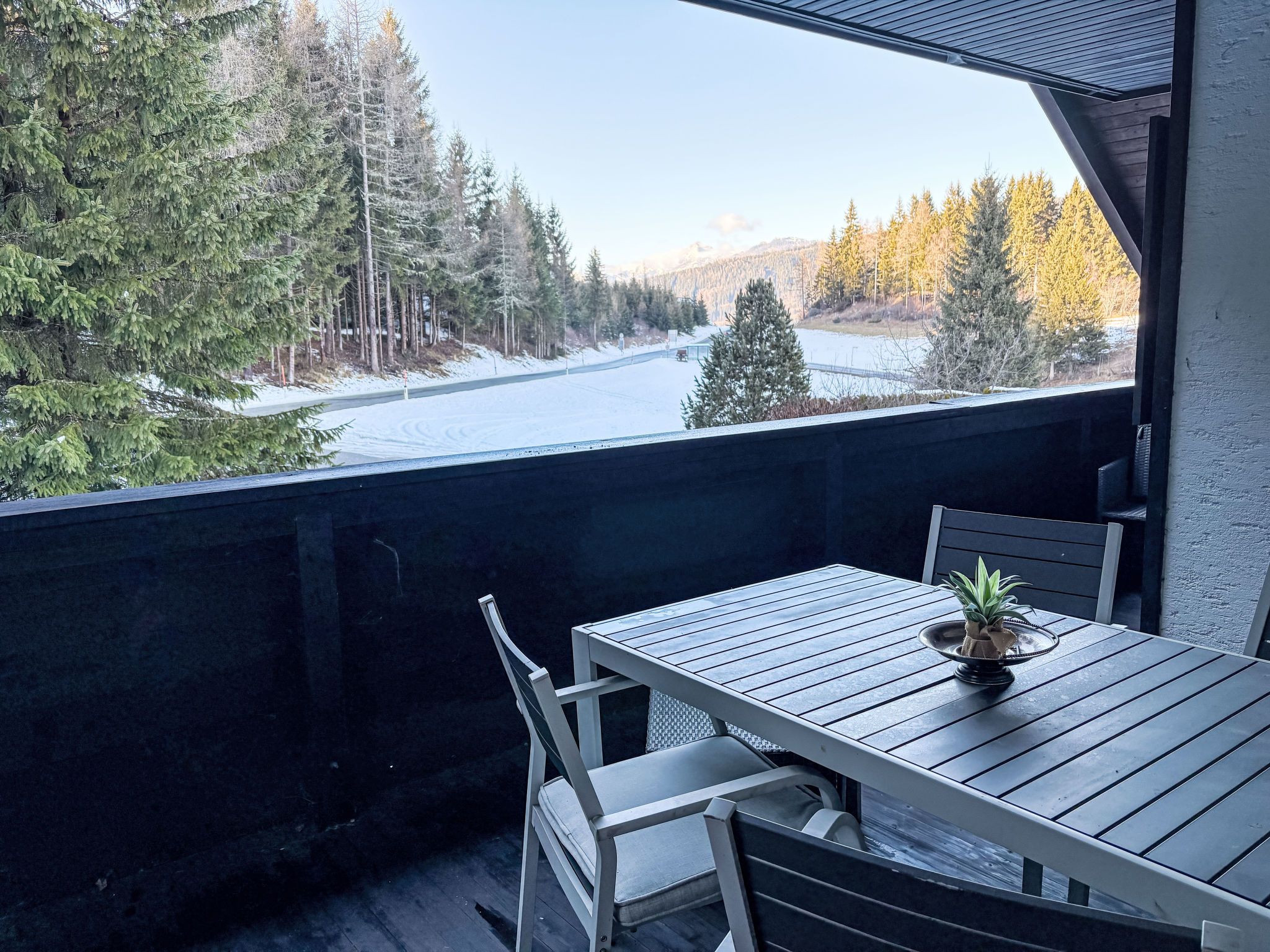 Silvia, 3-Zimmer-Wohnung 70 m2, im Obergeschoss. Komfortabel und mit viel Holz eingerichtet: 2 Doppelzimmer. Wohn-/Esszimmer mit offenem Kamin, Esstisch, TV und Flachbildschirm. Offene Küche (Backofen, Geschirrspüler, 4 Glaskeramikplatten, Toaster, Wasserkocher, elektrische Kaffeemaschine). Sep. WC, Bad/Dusche/WC. E-Heizung. Komfortable Einrichtung im Landhausstil. Grosser Balkon. Balkonmöbel. Sehr schöne Sicht auf die Berge. Zur Verfügung: Internet (WLAN, gratis). Bitte beachten: geeignet für Familien. Nichtraucher-Unterkunft. Maximal 1 Haustier/Hund erlaubt. Rauchmelder. 50511-000054-2020