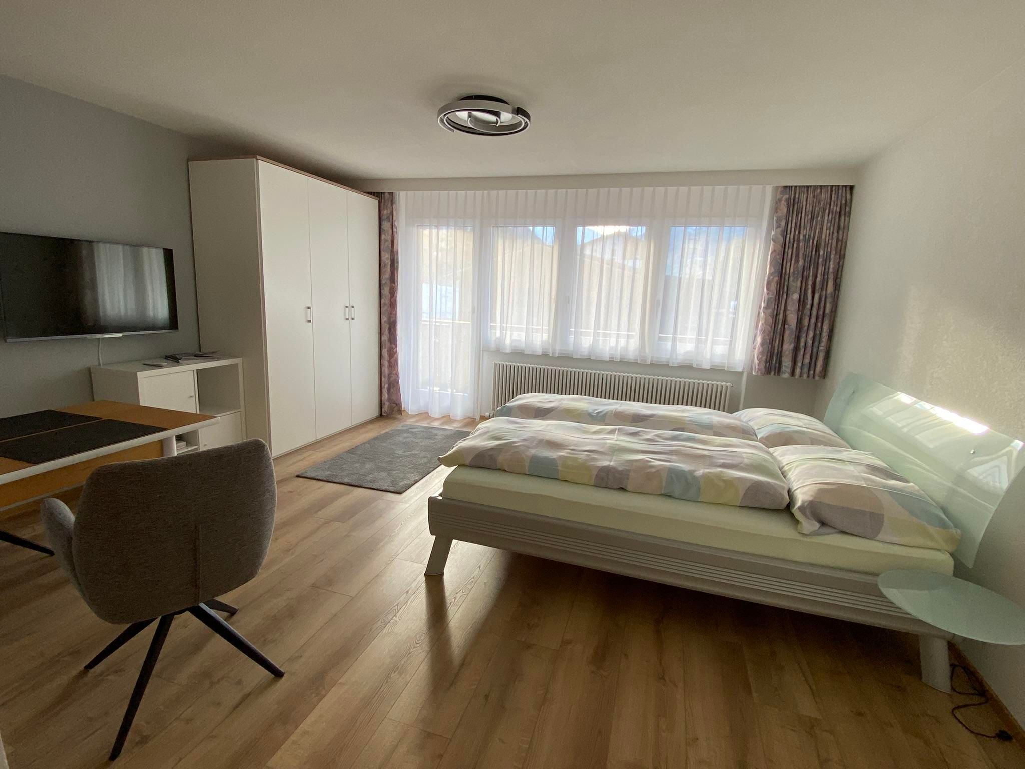 Die Wohnung verfügt über eine moderne Wohnküche mit Geschirrspüler, Mikrowelle mit Grillfunktion sowie Kaffeemaschine. Ein bequemes Doppelbett bietet Platz für 2 Personen. Zur Ausstattung gehören außerdem kostenloses WLAN, Swisscom-TV, Haarföhn sowie ein modernes Bad mit Dusche/WC.