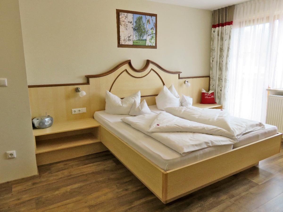 Doppelzimmer Ahorn: Komfortzimmer mit Doppelbetten, Zimmersafe, Sat –TV, CD Radio, Bad/DU/WC, Fön, Kosmetikspiegel, Handtücher und Badetücher. großer separater Südbalkon, Verwöhn-Frühstück vom Buffet Sauna, Infrarotkabine, Solarium, Whirlpool, Kneippanlagen ein Fitnessraum, Wohlfühl-Massagen, Naturkosmetik, Fußpflege, geführte Nordic- Walking-Touren, sowie wöchentliche Veranstaltungen im Haus (Brotbacken im Holzbackofen, frisch geräucherte Forellen, Grillabende oder ein Infoabend in gemütlicher Runde. WLAN steht Ihnen selbstverständlich kostenlos zur Verfügung. Mit unserer neuen Gästekarte, können Sie bis zu 50 km im Umkreis kostenlos mit Bus und Bahn fahren.