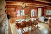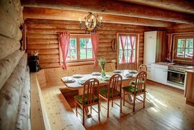 Die Hütte ist eine traditionelle, überwiegend aus Holz errichtete Unterkunft mit gemütlichem Hüttenflair und allem, was man für einen erholsamen Aufenthalt braucht. Besonders schön: Der große, eingezäunte Garten – ideal für Kinder und Hunde.