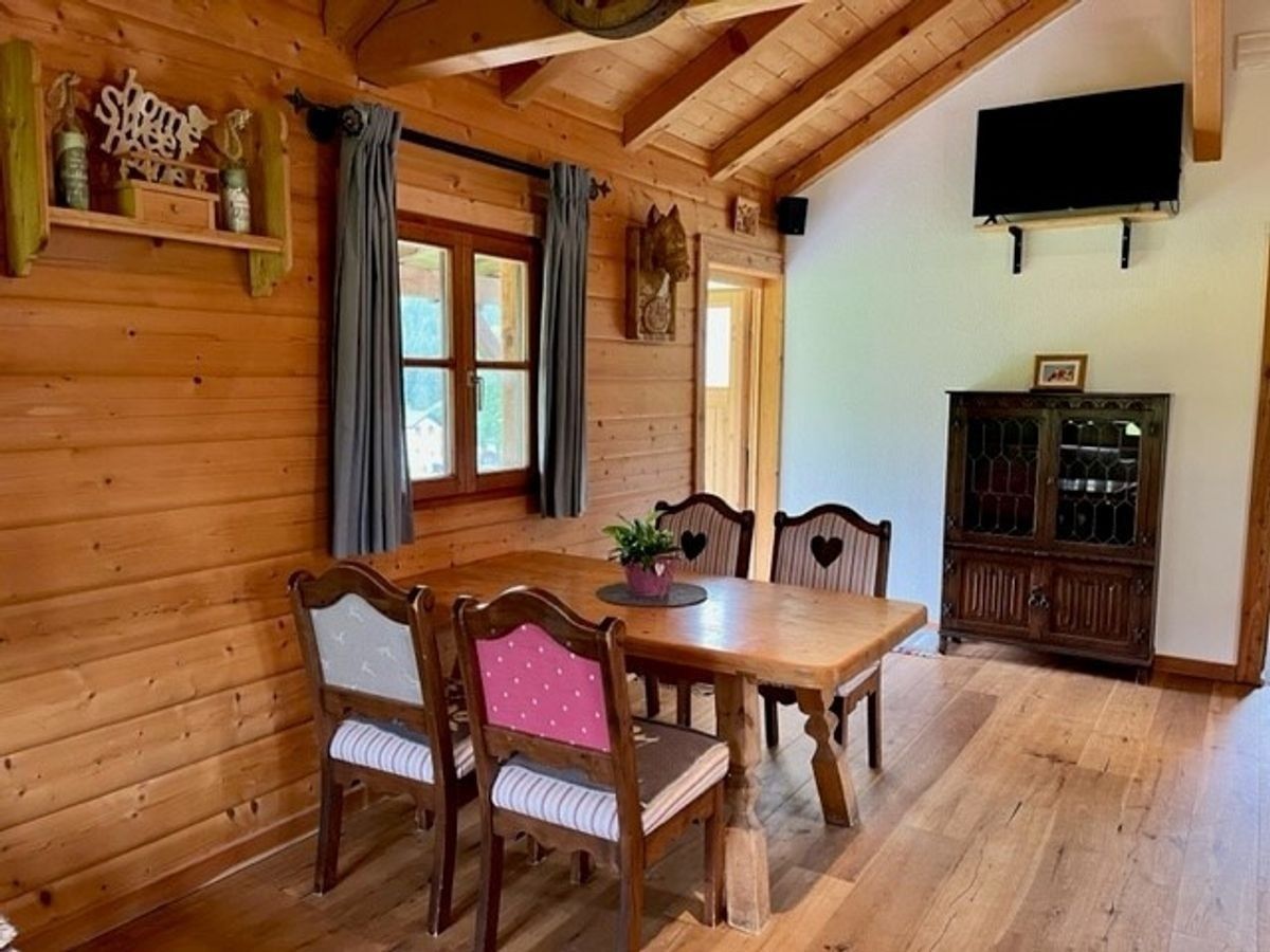 Das Badezimmer ist mit Dusche, Waschbecken und WC ausgestattet. In der urigen Wohnstube mit Küchenbereich – inklusive E-Herd mit Backofen, Kühlschrank, Mikrowelle und Nespresso-Maschine – genießt du gesellige Stunden am massiven Esstisch oder auf der bequemen Couch.