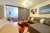 Apartment Anneliese, 3-Zimmer-Wohnung 77 m2, im Erdgeschoss. Sehr modern und stilvoll eingerichtet: Eingang. Wohnzimmer mit 1 Doppeldiwanbett (180 cm, Länge 200 cm), Schwedenofen (nur Deko), Flachbildschirm. 1 Doppelzimmer mit TV. 1 Zimmer mit 1 Bett (90 cm, Länge 200 cm), 1 Doppelbett und TV. Grosse Küche (Backofen, 4 Induktionskochplatten, Toaster, Wasserkocher, Mikrowelle, elektrische Kaffeemaschine) mit Esstisch. Ausgang zur Terrasse. Bad/Dusche, sep. WC. Bodenheizung. Parkettboden. Terrasse 30 m2. Terrassenmöbel. Schöne Panoramasicht auf die Berge und das Tal. Zur Verfügung: Internet (WLAN). Parkplatz beim Haus. Bitte beachten: Nichtraucher-Unterkunft. Rauchmelder. 50611-003991-2025
