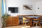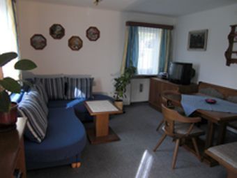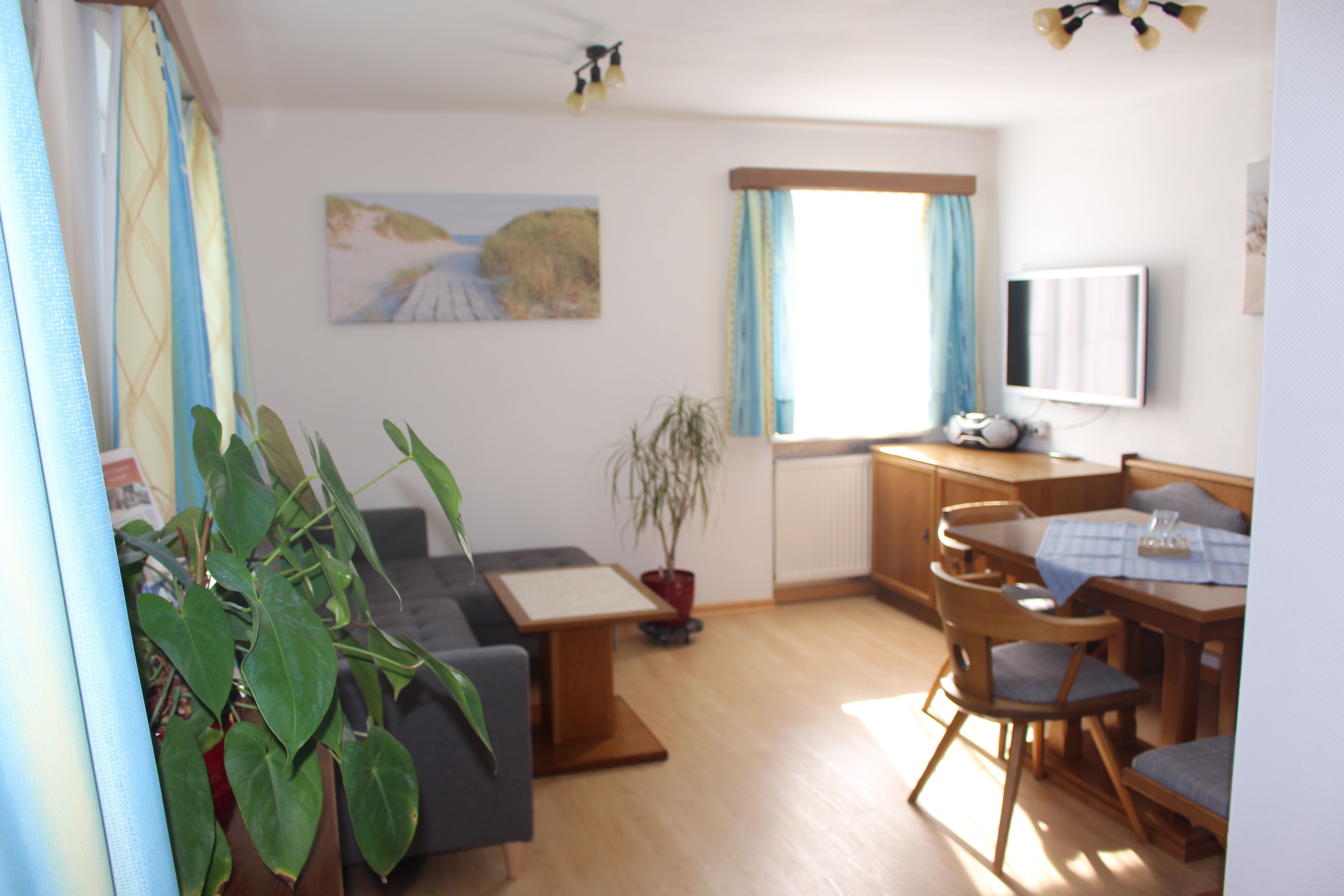 Im gemütlich eingerichteten Wohnzimmer befindet sich eine rustikale Essecke und eine ausziehbare Couchecke, welche bei Belegung durch 5 Personen als Schlafstelle dient.