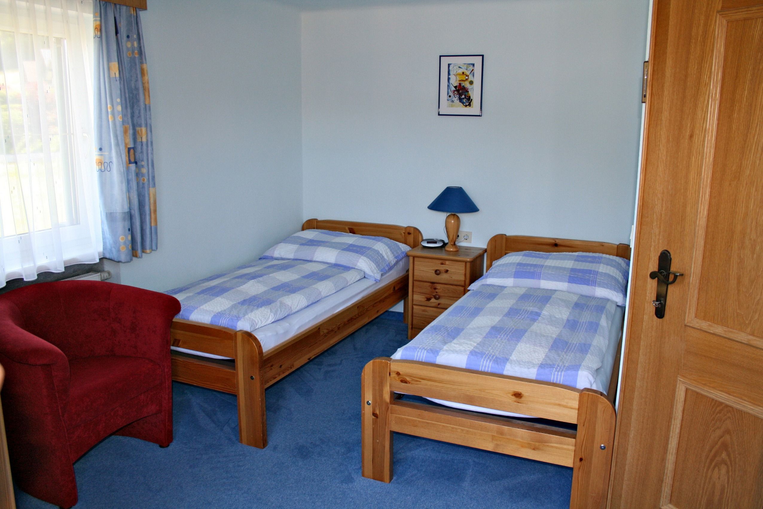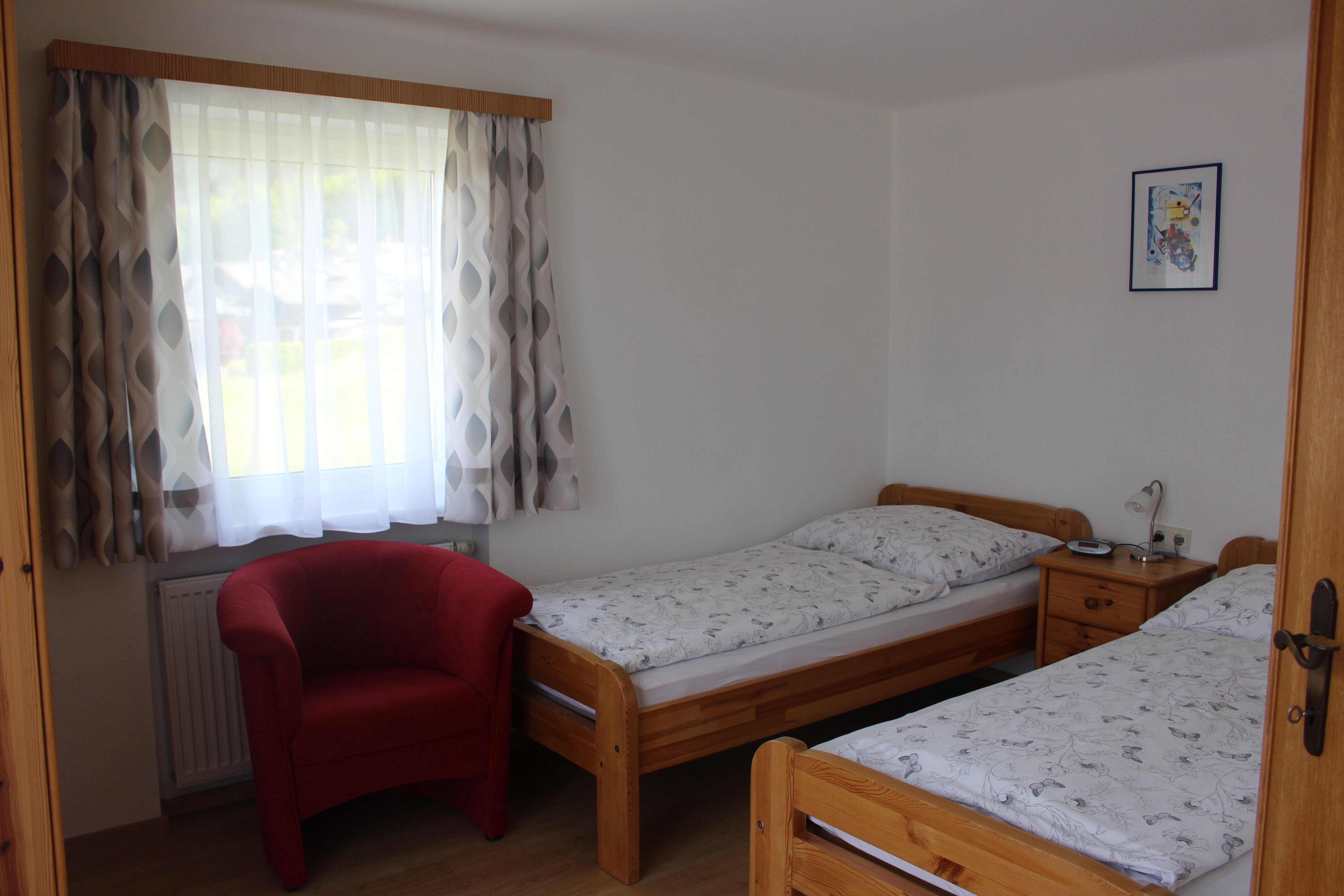 Ein Schlafzimmer ist mit einem Doppelbett, das andere mit zwei getrennten Betten ausgestattet.