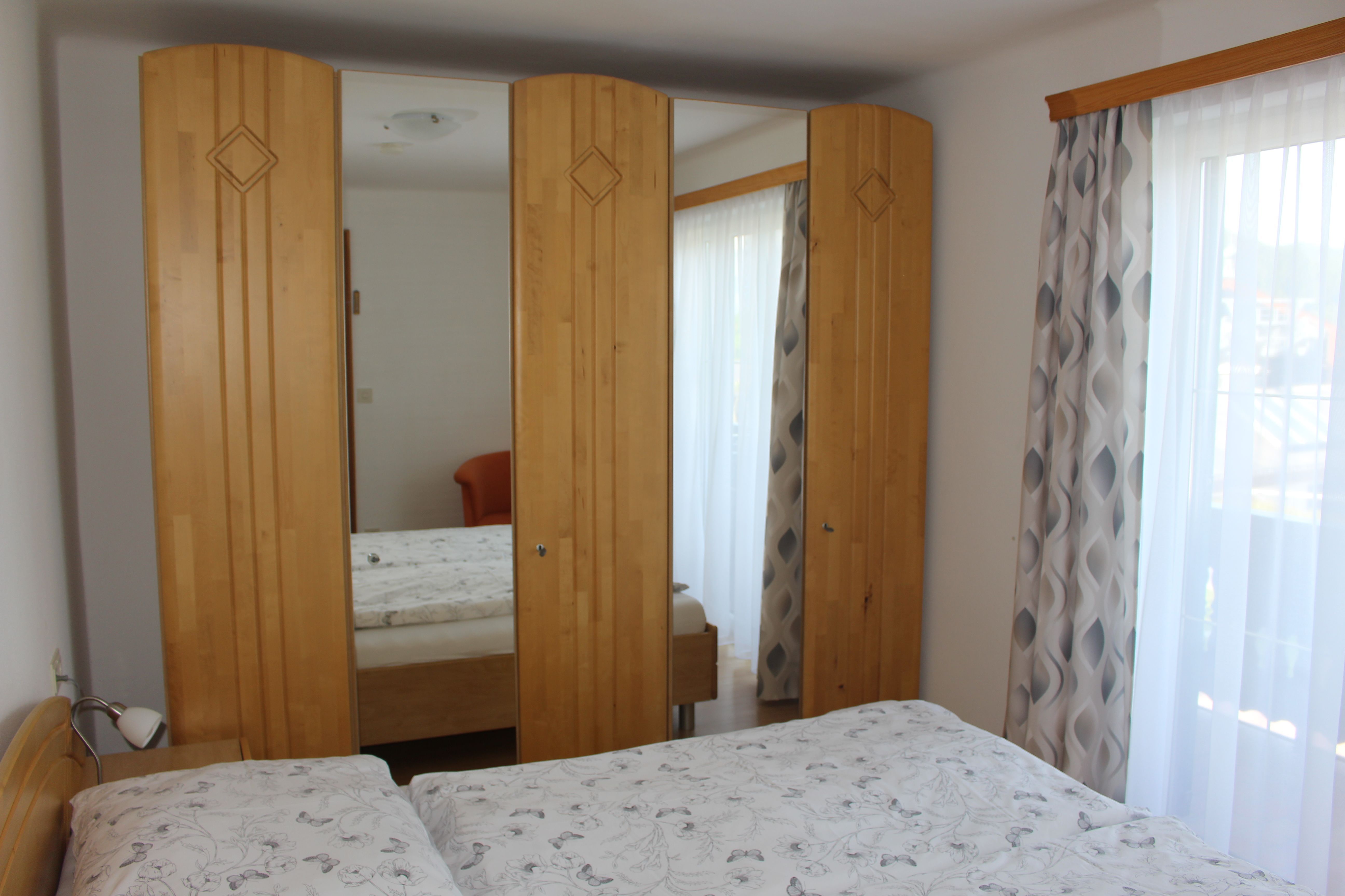 Die modern eingerichtete ca. 56 m² große Wohnung liegt im ersten Stock. Sie besteht aus einem großen Wohnzimmer, 2 Schlafzimmern, einer komplett ausgestatteten Küche, Bad, separatem WC und einem Vorraum. Vom Balkon des Wohnzimmers und der Schlafzimmer wird Ihnen ein herrlicher Ausblick auf den Wolfgangsee und den Schafberg geboten. Die Ferienwohnung ist eine Nichtraucherwohnung.Ein Schlafzimmer ist mit einem Doppelbett, das andere mit zwei getrennten Betten ausgestattet.