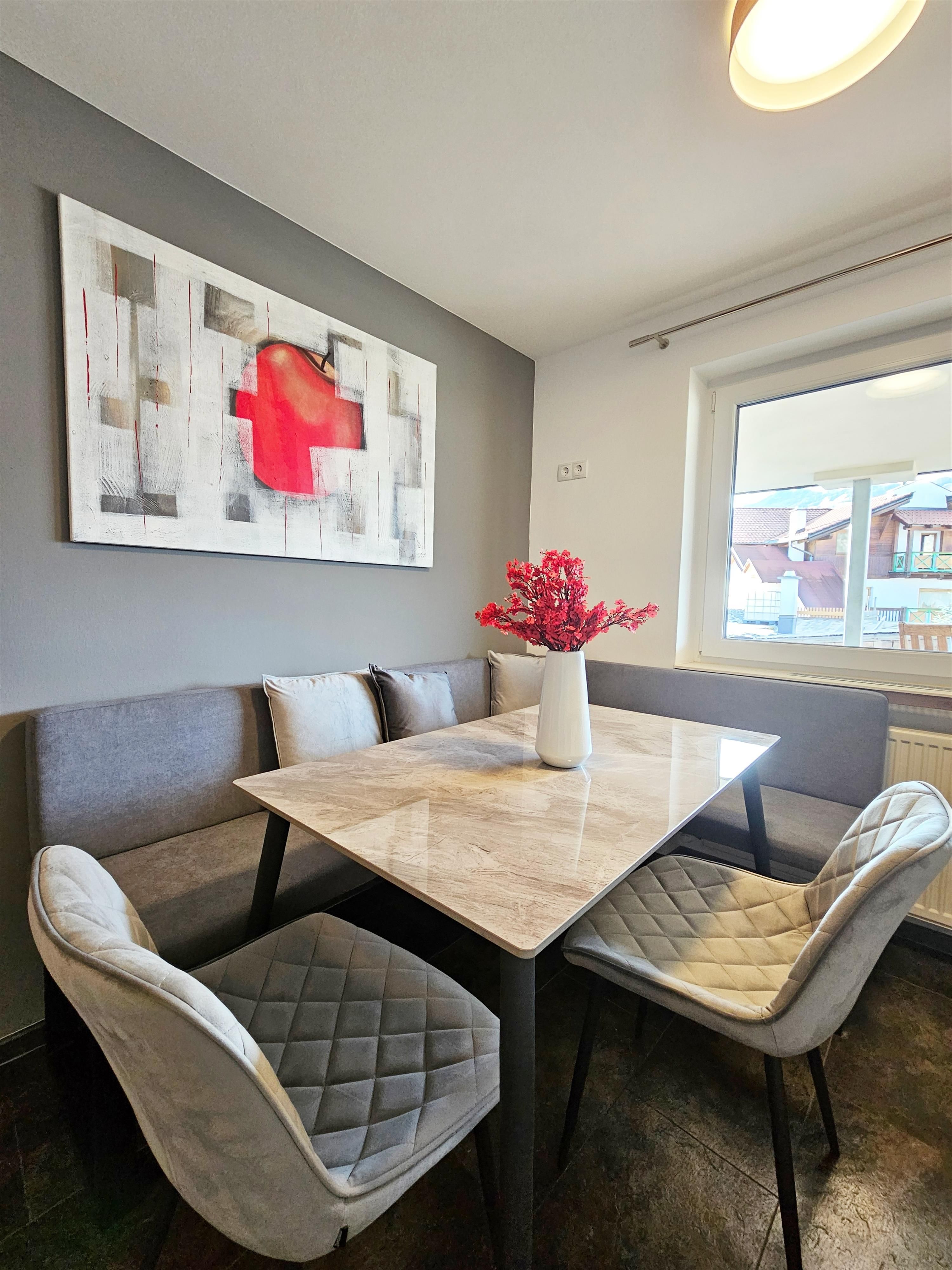 Heller Wohn- & Essbereich mit voll ausgestatteter Küche
