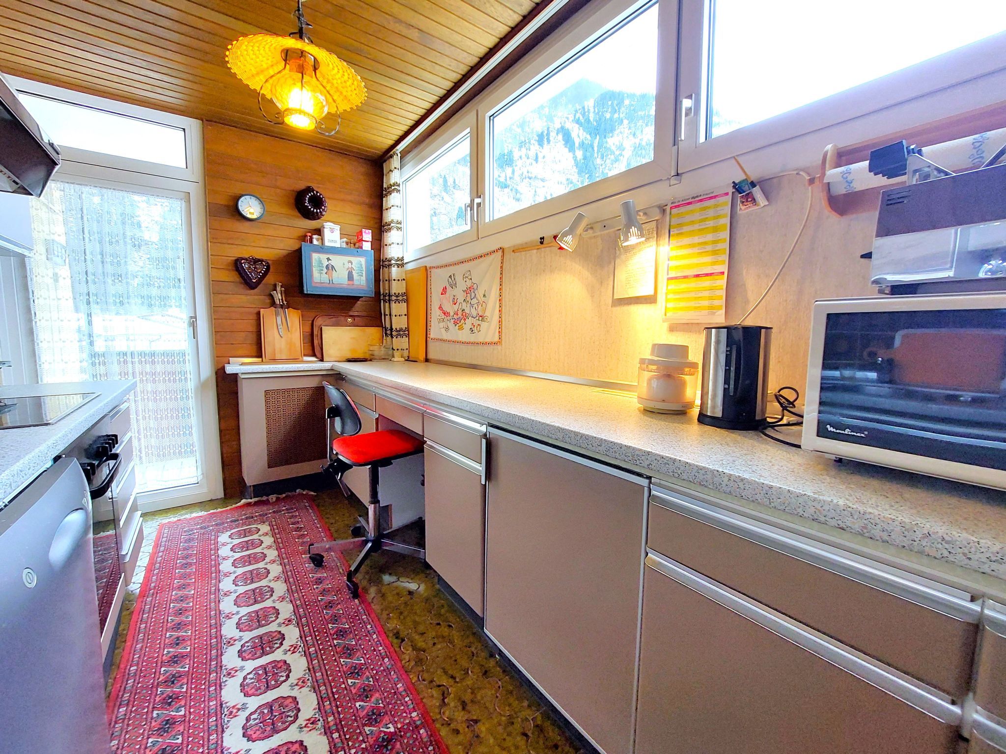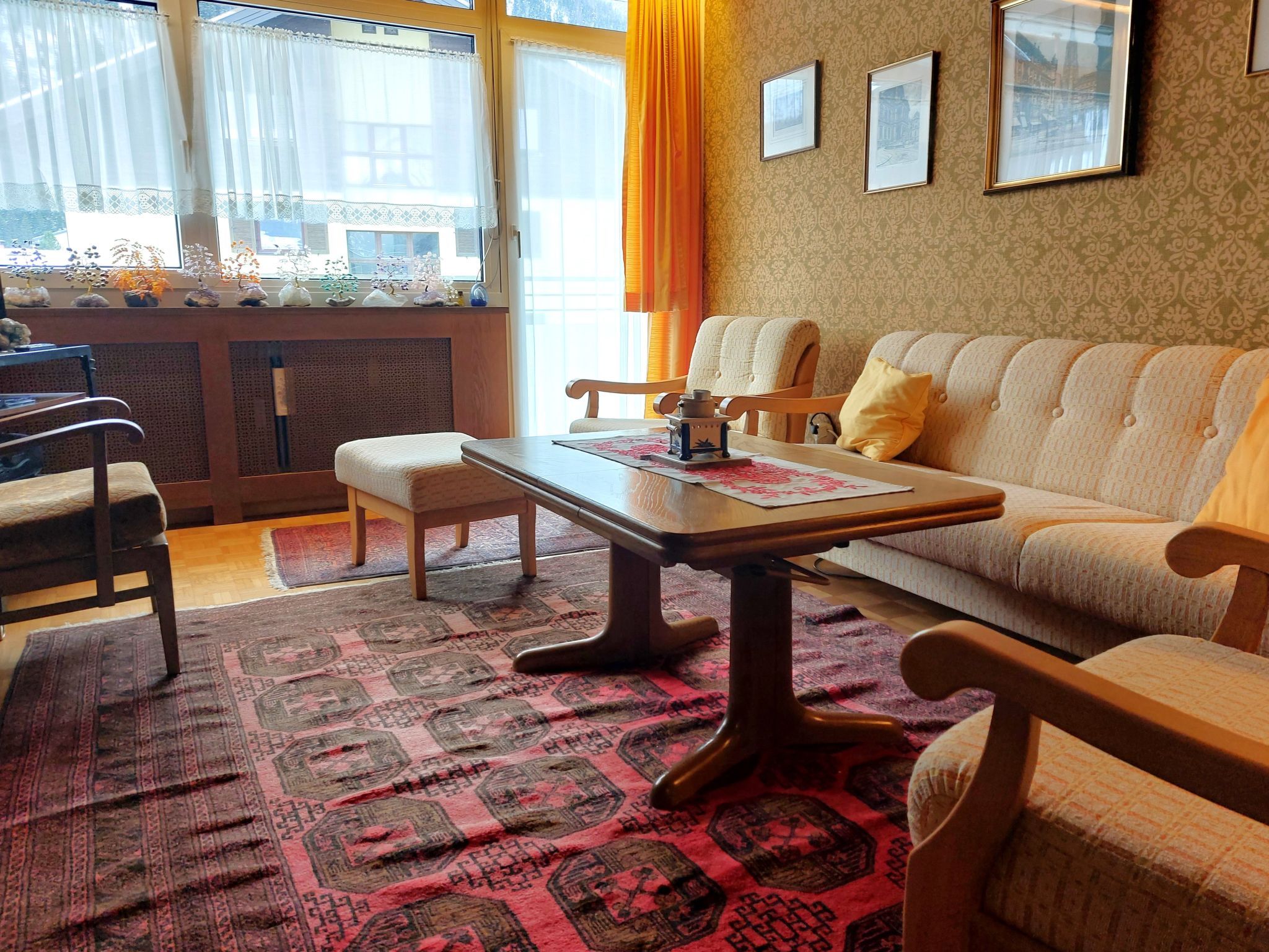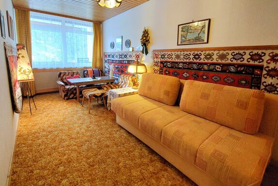 Morgensonne, 4-Zimmer-Wohnung im Obergeschoss. Objekt geeignet für 6 Erwachsene. Geräumig und hell, komfortabel und gemütlich eingerichtet: Eingang. Esszimmer mit Essecke. Wohnzimmer mit Kabel-TV (Flachbildschirm). Ausgang zum Balkon. 1 Doppelzimmer. 2 Zimmer, jedes Zimmer mit 1 Doppeldiwanbett. Kleine Küche (Backofen, Geschirrspüler, 4 Glaskeramikplatten, Toaster, Wasserkocher, elektrische Kaffeemaschine). Ausgang zum Balkon. Dusche, sep. WC. Parkettboden, Teppichboden. Grosser Balkon, kleiner Balkon. Schöne Panoramasicht auf die Berge. Parkplatz beim Haus. Bitte beachten: geeignet für Familien. Nichtraucher-Unterkunft. Kein Fahrstuhl.