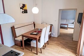 Apt. 4 Wilhelm von Mosheim, 3-Zimmer-Wohnung 66 m2 im 1. Stock. Objekt geeignet für 4 Erwachsene. Komfortabel und geschmackvoll eingerichtet: 2 Doppelzimmer, niedrige Türrahmen, Höhe 180 cm. Wohn-/Esszimmer mit 1 Ausziehbett und Sat-TV (Flachbildschirm). Offene Küche (Geschirrspüler, 2 Glaskeramikplatten, Toaster, Wasserkocher, Mikrowelle, elektrische Kaffeemaschine, Kapseln für die Kaffeemaschine (Segafredo mitnehmen) extra). Dusche/WC, Doppelwaschbecken. Heizung. Parkettboden. Zur Verfügung: Internet (WLAN, gratis). Bitte beachten: ein Doppelzimmer liegt außerhalb der Wohnung. Kein Parkplatz. 1 Schlafzimmer ist mit separatem Eingang, eigenem WC und Dusche.