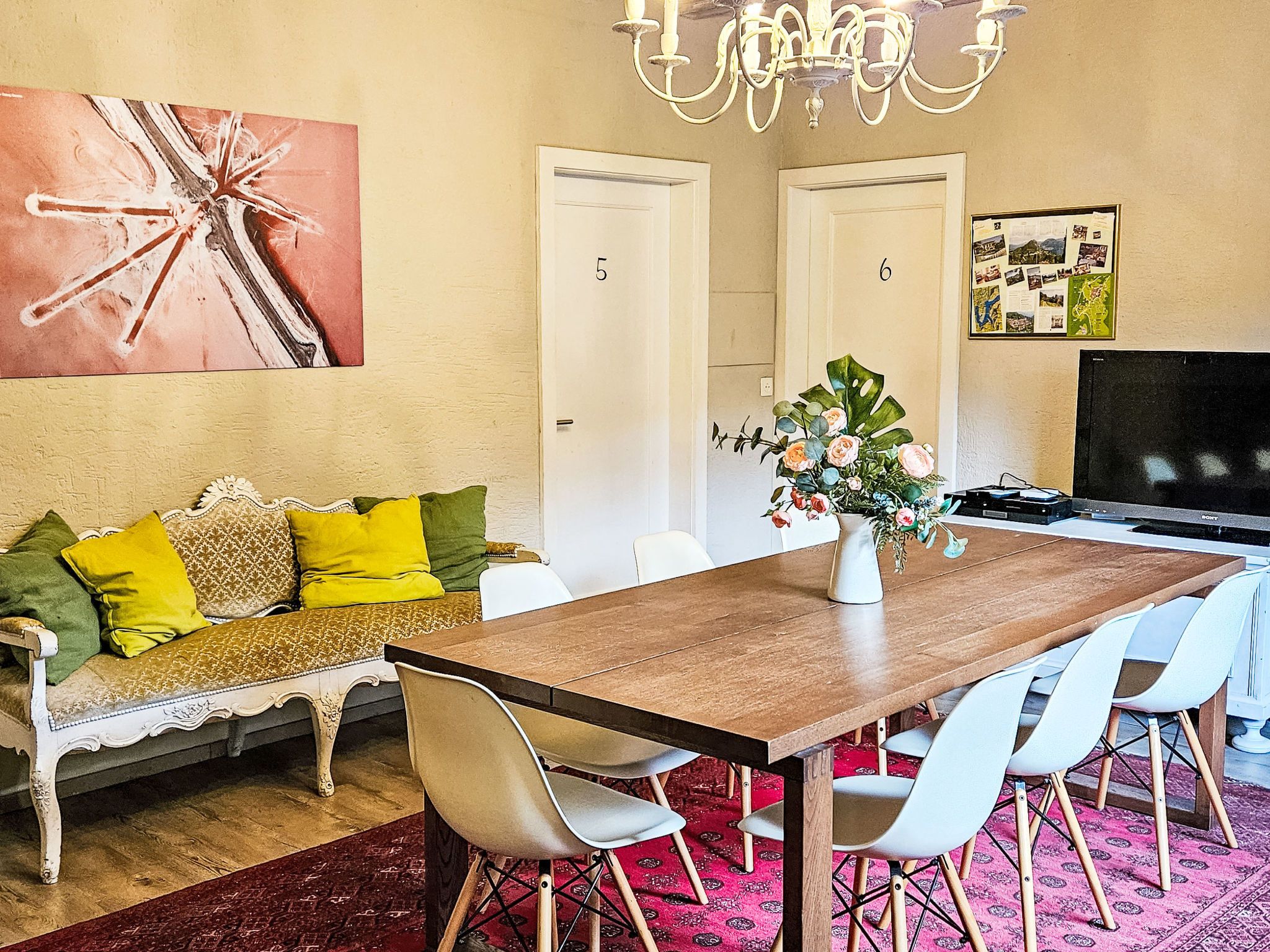 Calina ist ein gemütlicher Rückzugsort mit dem Charme eines Gästehauses und der Flexibilität eines Ferienhauses. In ruhiger Lage bietet sie einen spektakulären Blick auf den Luganersee und den Monte San Salvatore, umgeben von einem großzügigen mediterranen Garten. Im Sommer sorgt ein großer Gartenpool für Erfrischung und lädt dazu ein, die Schönheit der Schweizer Landschaft zu genießen. Grosses, schönes Haus Calina, Baujahr 1965, renoviert im Jahre 2024, umgeben von Bäumen. Am Ortsrand, 25 km vom See, in einer Sackgasse. Zur Mitbenutzung: Tischtennis, Terrasse (200 m2), Gartenmöbel, Grill. Zur Alleinbenutzung: Grundstück 600 m2, schöner, gepflegter Garten, Aufstellpool rund (4 m Durchmesser, 120 cm tief, saisonale Verfügbarkeit: 01.Jun. und 01.Sep.). Grill, Kinderspielplatz. Im Hause: Zentralheizung. Parkplatz (für 5 Autos) beim Haus, öffentliche Parkplätze auf der Strasse. Bushaltestelle 800 m.