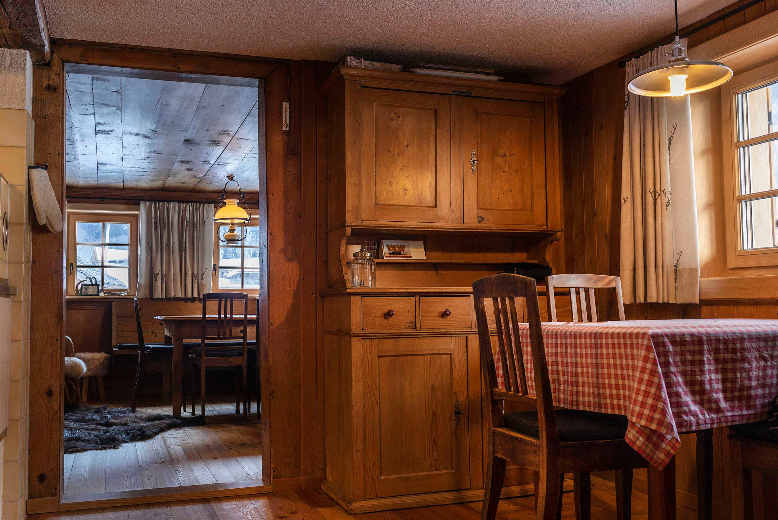 Die Gemeinschaftsküche mit voller Ausstattung bietet allen Hobby- und professionellen Köchen die Möglichkeit, Köstliches auf den Tisch zu zaubern. Nicht nur der großzügige Essplatz im Schopf lässt die Feriengäste die Tradition der geschichtsträchtigen Häuser im Bregenzerwald spüren.