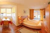 Freuen Sie sich auf einen erholsamen Aufenthalt in gemütlich eingerichteten Apartments mit Balkon, die Ihnen einen entspannten Rückzugsort bieten. Morgens nehmen Sie Platz im hellen, freundlichen Frühstücksraum und lassen sich Ihr Frühstück schmecken. Schmieden Sie Pläne für den Tag und freuen Sie sich auf entspannende Momente in der Wellnessoase. Im Restaurant werden Sie mit Pizza und Grillgerichten verwöhnt.