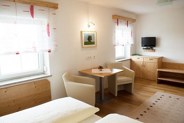Der Vierkanthof aus dem 17. Jh. begrüßt Sie mit freundlich eingerichteten Gästezimmern mit modernem Komfort. Geölte Eichenböden und Vollholzmöbel sorgen für eine behagliche Atmosphäre. Morgens erwartet Sie ein reich gedeckter Frühstückstisch mit vielen selbst hergestellten Produkten. Relaxen Sie auf der Terrasse und entspannen Sie auf der Liegewiese.