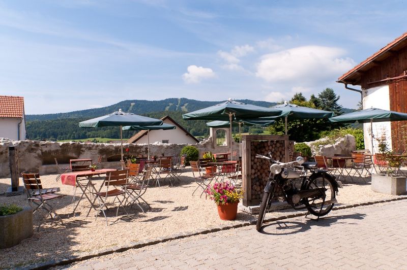 Die Ferienwohnung ist 35qm groß und verfügt über ein Schlafzimmer. In dem Schlafzimmer befindet sich ein Doppelbett. In der Ferienwohnung befindet sich eine Küchenzeile, ein Kühlschrank, eine Kaffeemaschine und eine Wohnküche mit Schlafcouch. Außerdem befindet sich ein Telefon in der Ferienwohnung. Im Badezimmer befindet sich eine Badewanne und ein WC. Innerhalb der Ferienwohnung kann mit einem LAN Kabel auf das Internet zugegriffen werden. Im Frühstücksbereich gibt es WLAN. In unserem Gasthof können Gäste sich in unserer gemütlichen Gaststube nach Belieben Verpflegen. In den Sommermonaten gibt es einen idyllischen Biergarten mit Panoramablick auf den Bayerischen Wald. Ein Hund ist auf Anfrage möglich. Parkplätze stehen unseren Gästen kostenfrei zur Verfügung.