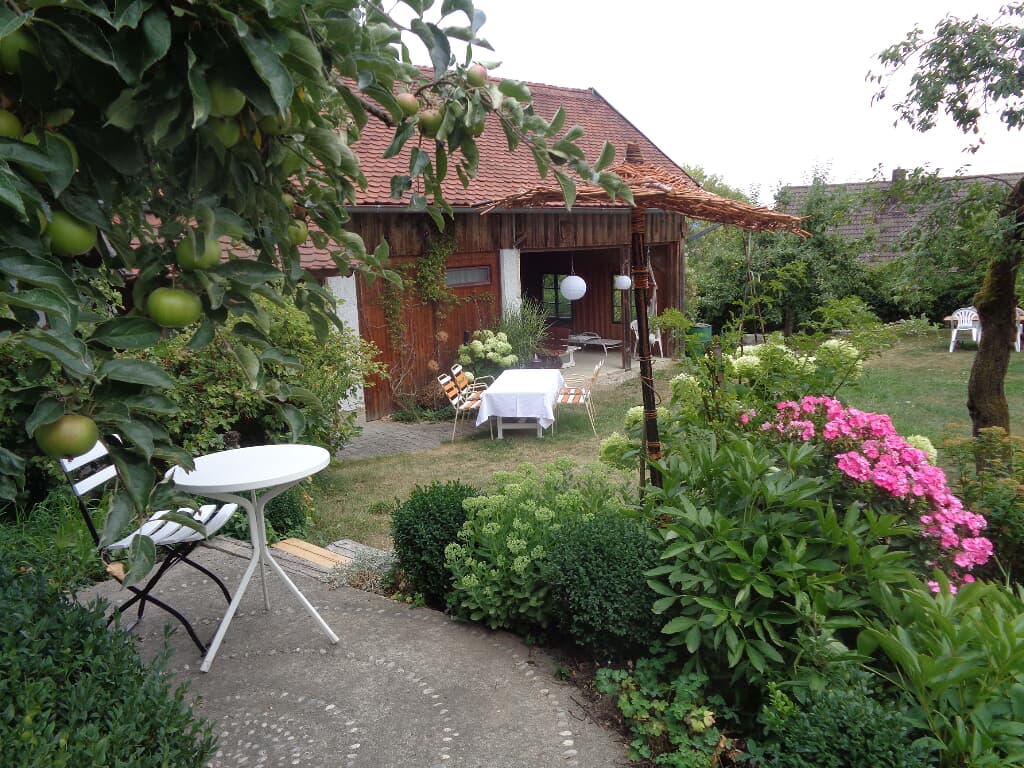 Unser kleines, ein bischen romatisches Gartenhaus ist gut ausgestattet und bietet Ihnen Erholung pur. Bereits zum Frühstück können Sie auswählen, unter welchem Obstbaum Sie das Frühstück einnehmen wollen. Ein gepflegter Garten mit alten Obstbäumen, ein überdachter Freisitz, andere individuelle Sitzplätze, ein Grillplatz und Liegemöbel landen ein zum Faulenzen und Entspannen.