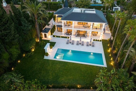 Luxury villa located in the exclusive Sierra Blanca area of Marbella, offering stunning Mediterranean sea views. With 6 bedrooms, indoor and outdoor pools, sauna, gym, and spacious terraces, it is ideal for families or groups seeking privacy and comfort.