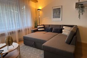 Wohn-, Schlafraum mit Bettsofa (140 x 190), Essecke, TV, W-LAN, Bluetooth Radio.