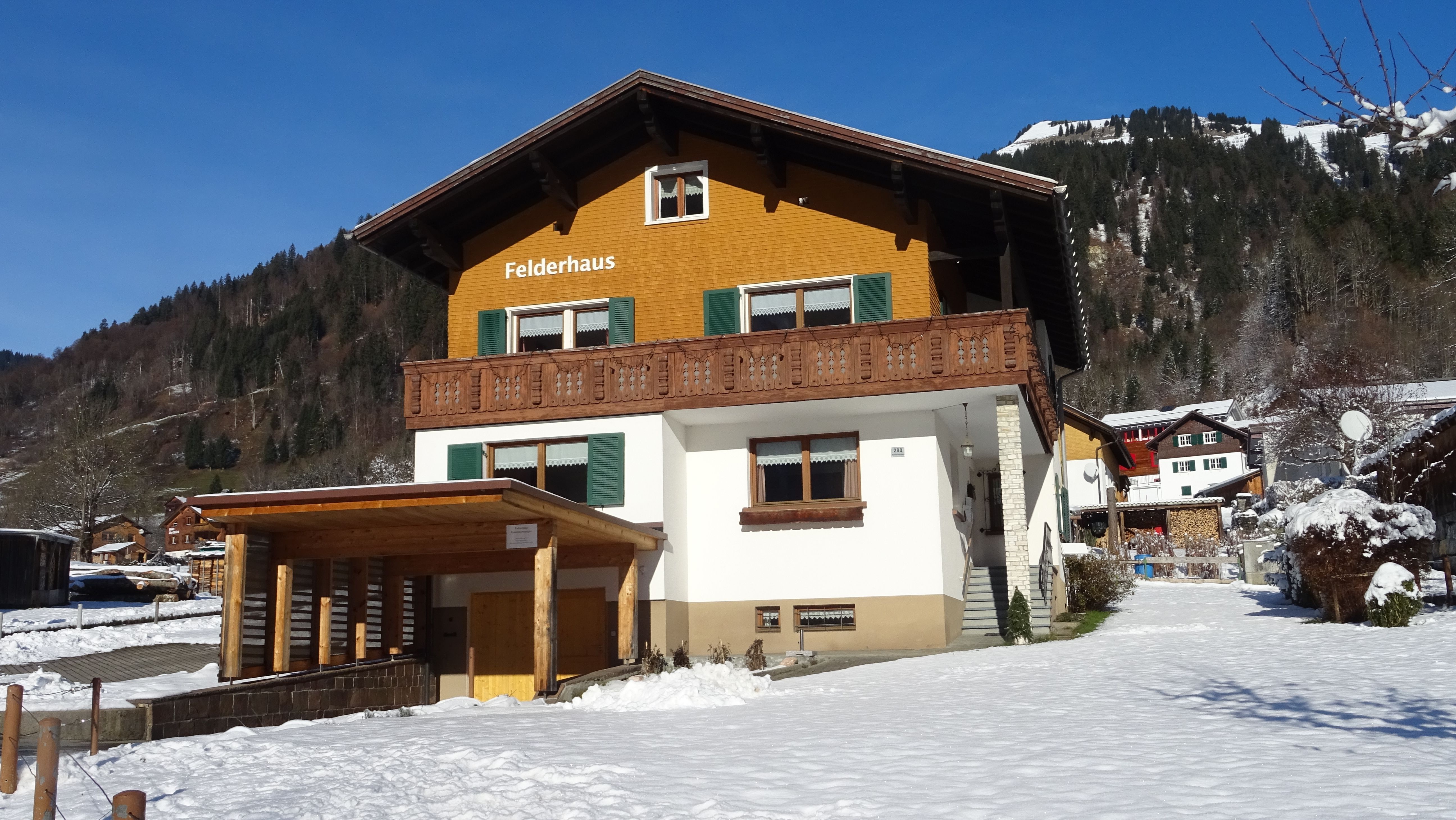 Das Felderhaus liegt in zentraler Lage und doch abseits von Hektik und Lärm. Gratis Parkplätze direkt vor dem Haus. Im Winter können Sie mit den Skieren direkt bis zum Haus fahren, auch die Langlaufloipen sind schnell und einfach erreichbar. Im Sommer idealer Ausgangspunkt für zahlreiche Wanderungen und Bergtouren.