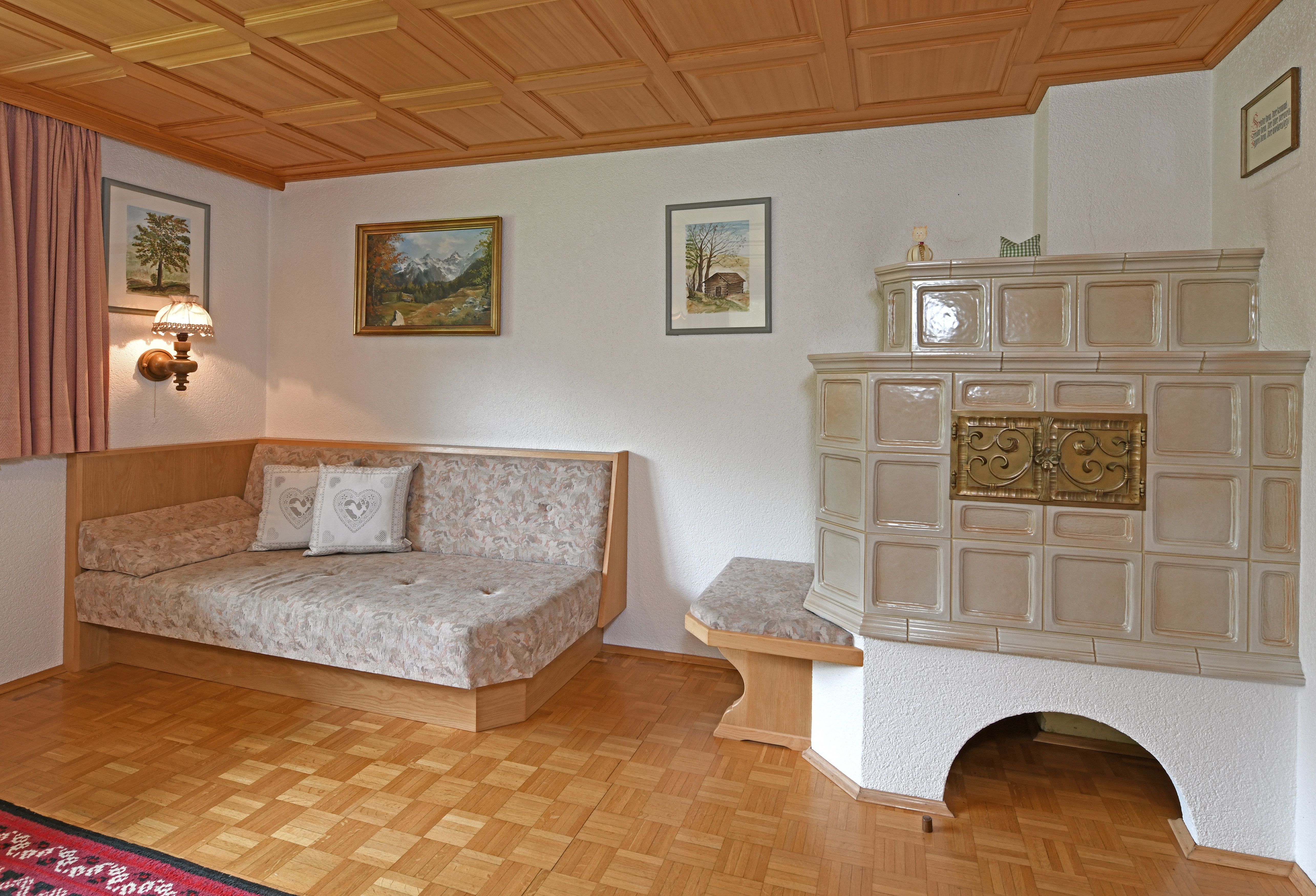 Wohnzimmer mit Kachelofen.