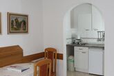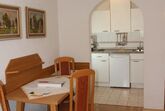 2-Zimmerappartement mit Küchenzeile, Essbereich und Balkon mit Blick in den Garten