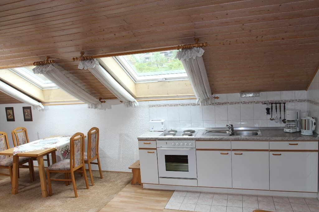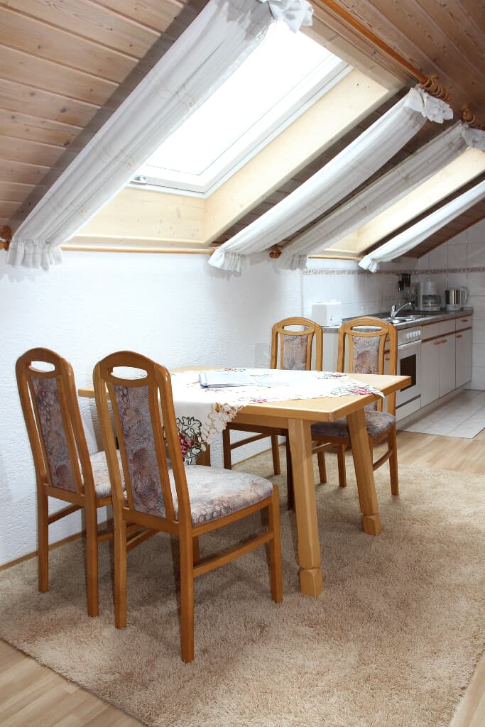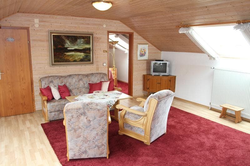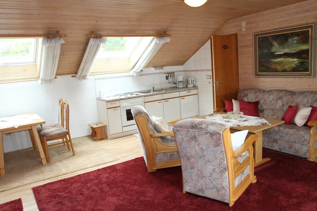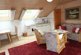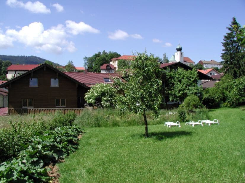 2-Zimmerappartement im Dachgeschossmit Blick in den Garten, Hausberge Osser und Arber