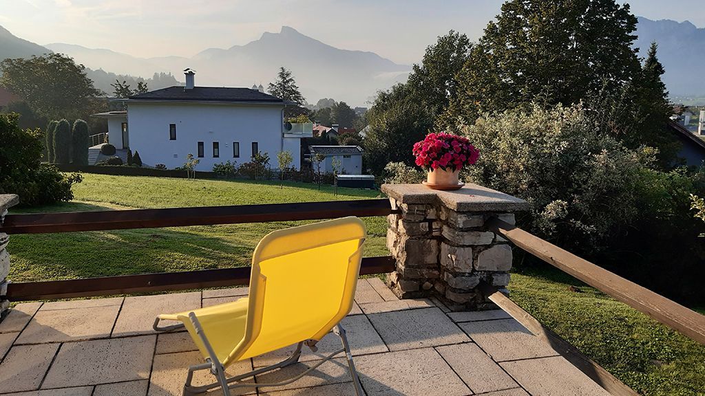 Sie genießen einen direkten Blick auf den Mondsee, umgeben von einem herrlichen Bergpanorama.