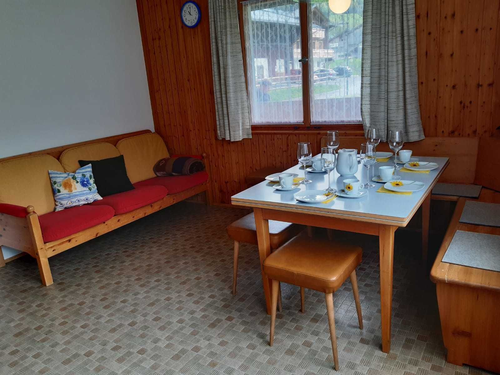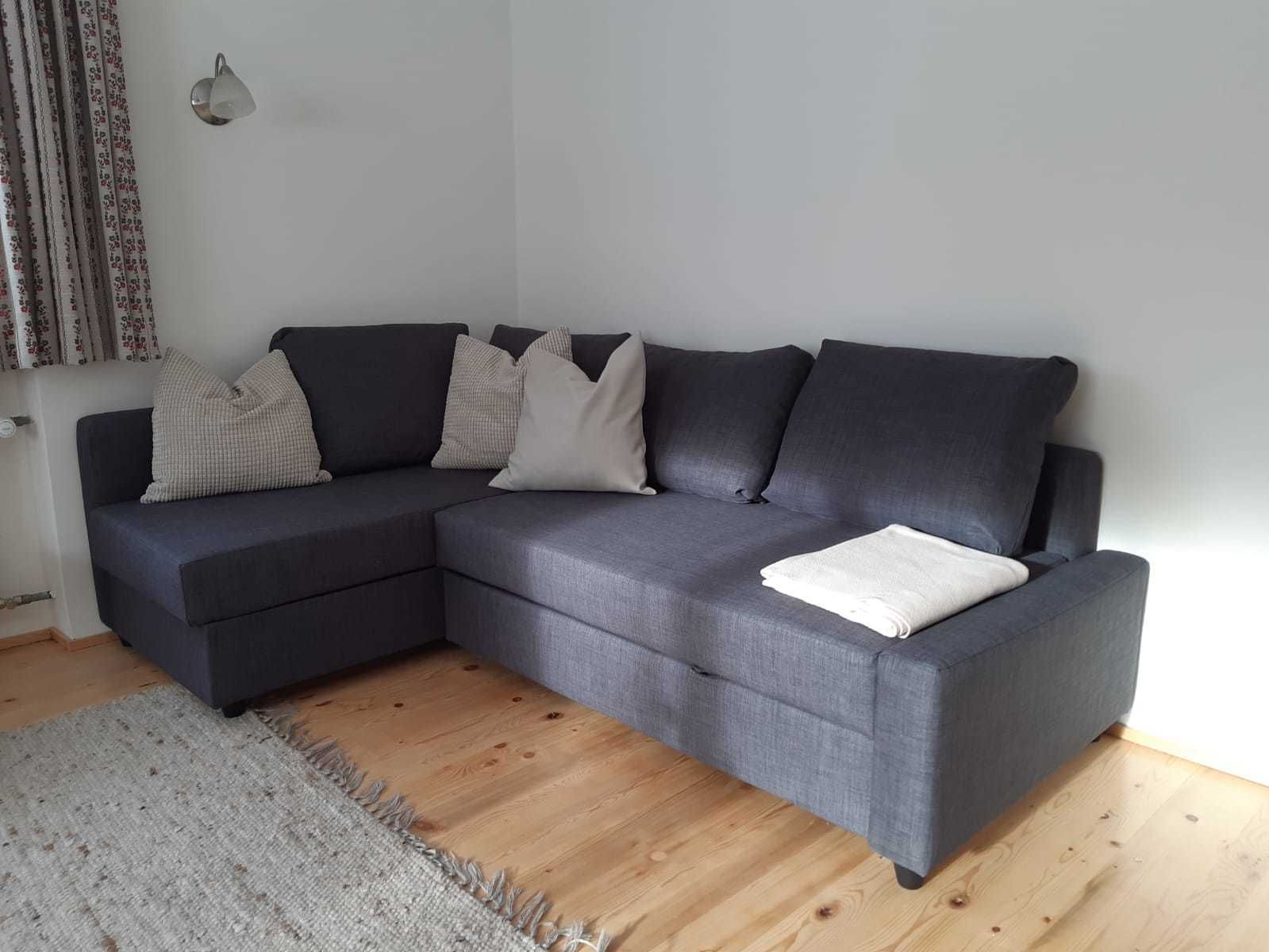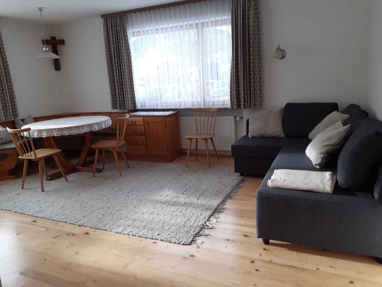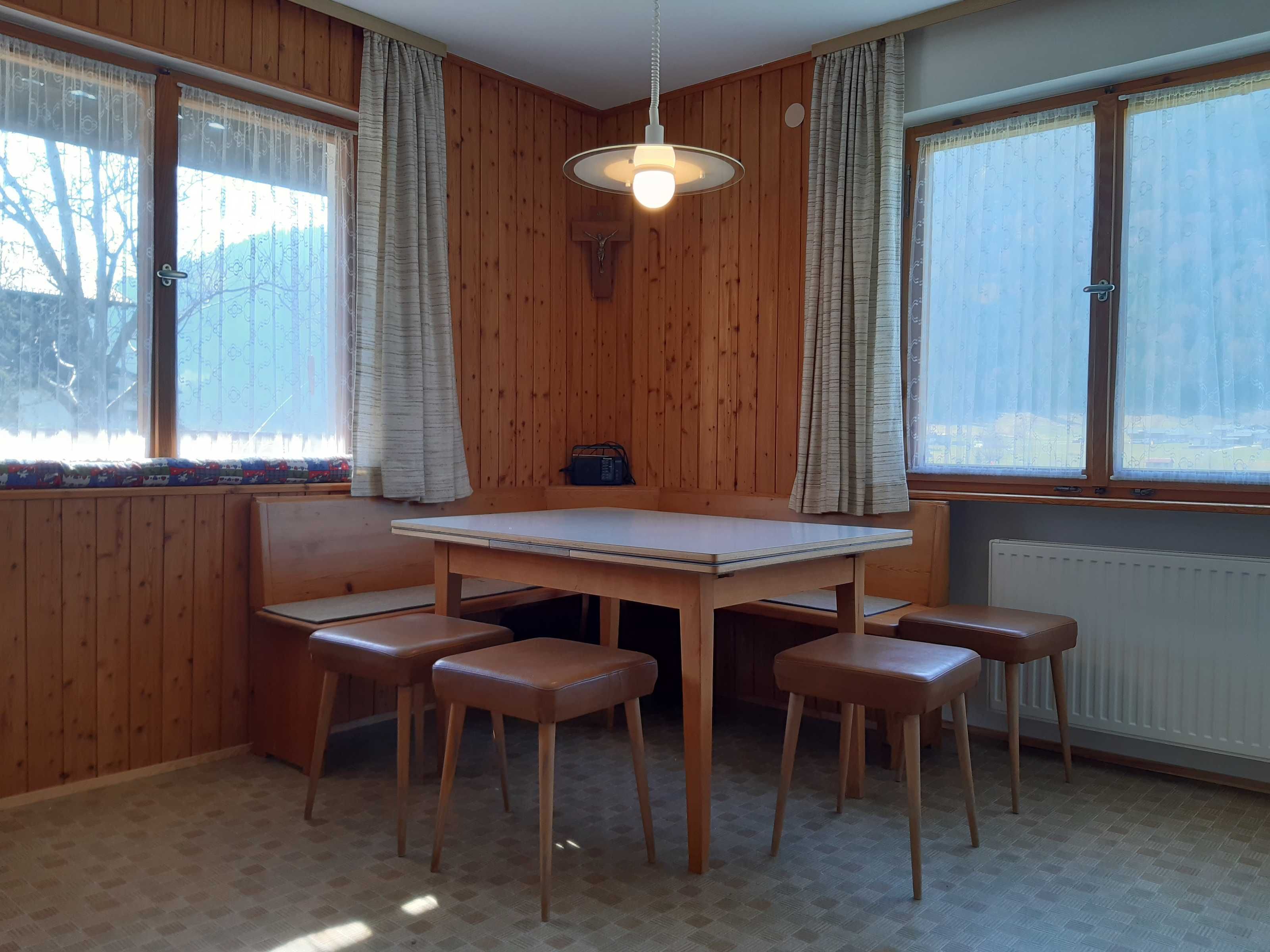 Im Untergeschoß eine komplett eingerichtete Küche mit ausziehbarem Esstisch und Couch, Kühlschrank, Geschirrspüler, Backrohr, Cerankochfeld, Wasserkocher, Filterkaffeemaschine; 1 großes Wohnzimmer mit SAT-TV, Sofa; 1 WC, 1 älteres Badezimmer mit Badewanne und Duschmöglichkeit, Fön; Ski-Depot im Heizkeller mit Ablage/Aufhängemöglichkeit für Schuhe, Bekleidung, Helm, Abstellmöglichkeit für Fahrräder; Hauseigene Parkplätze; WLAN;