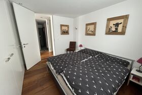 2 Schlafzimmer mit je einem Doppelbett (1.8 x 2m und eines 1.6 x 2m). Beide Schlafzimmer verfügen über Kleiderschränke. Bettwäsche vorhanden und im Preis inklusive.