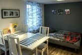 Gemütliche, modern eingerichtete Wohnung mit einem Schlafzimmer für 2 Personen, einem Studio mit Doppelbett und komplett eingerichtete Küche mit Kapsel-Kaffeemaschine. Ein zusätzliches Zimmer mit Schlafsofa für 2 Personen (wird bei einer Belegung ab 4 Personen abgegeben), Komfortables Bad mit Dusche/Badewanne. Kostenloser Parkplatz und vieles mehr. Die Unterkunft Unser Haus liegt im Herzen von Gossau. Vielfältige Einkaufsmöglichkeiten sind in unmittelbarer Nähe. Ideale Anbindung an den öffentlichen Verkehr. Zugang für Gäste - Das oberste Stockwerk steht während Ihres Aufenthalts nur Ihnen zur Verfügung. - Die Waschküche im UG teilen Sie mit unserem Dauermieter im EG. - Unser wunderschöner Vorgarten mit Gartenkamin, Sitzgruppe und Sonnenschirm können Sie nach Absprache gerne mitbenutzen. - Ein Gratis-Parkplatz befindet sich neben dem Haus. - Kaffee und Tee steht kostenlos unbegrenzt zur Verfügung. - Ein Notebook befindet sich in der Wohnung, so haben Sie jederzeit Zugriff auf unsere Website, welche Ihnen unsere Gegend näher bringt. Interaktion mit Gästen Wir wohnen in der Nähe, nur 800 Meter vom Haus entfernt und sind dadurch jederzeit für Sie telefonisch erreichbar. Wir tun alles, um Ihnen einen erholsamen Urlaub zu ermöglichen. Die Nachbarschaft Gossau SG ist eine schmucke Kleinstadt mit 18'000 Einwohnern. Sie ist ein idealer Ausgangspunkt für Ausflüge ins Appenzellerland, ins Toggenburg, ins Alpsteingebirge, an den Bodensee oder in die Stadt St.Gallen mit historischem Stadtkern und Klosterbezirk. Weitere Highlight's sind der Gossauer Walterzoo, das Motorradmuseum an unserer Strasse, die grosse Freizeit und Badeanlage Säntispark im Nachbardorf und vieles mehr. Verkehrsmittel Der Bahnhof ist in 10 Minuten Fussweg erreichbar. Eine Bushaltestelle befindet sich 4 Häuser weiter an der Hauptstrasse. Sonstige Wohnzimmerausstattung (Wohnzimmer1): Der Raum ist als Studio eingerichtet. - Schlafsofa mit einer Liegefläche von 1,6 x 2 Meter- Esstisch mit 4 bis 6 Stühlen, je nach Belegung.- Kleiderschrank- Komplett eingerichtete Küche, Kaffeemaschine, Microwelle, Geschirrspühler.- Curved HD-TV 40 mit Hispeed Internet, ca. 250 TV-Sender, Streamingdienste, Salt TV Sonstige Schlafzimmereinrichtung (Schlafzimmer1): Grosser Kleiderschrank, kleiner Schreibtisch, 2 Stühle. Sonstige Kücheneinrichtung (Küche1): Die Küche ist komplett eingerichtet, inkl. Küchenwäsche. Sportmöglichkeiten in der Umgebung: Golfplatz, Klettern, Radtouren, Rodeln, Ski (alpin), Ski (Langlauf), Sportcenter Ortsbeschreibung: Gossau SG ist eine schmucke Kleinstadt mit 18'000 Einwohnern. Sie ist ein idealer Ausgangspunkt für Ausflüge ins Appenzellerland, ins Toggenburg, ins Alpsteingebirge, an den Bodensee oder in die Stadt St.Gallen mit historischem Stadtkern und Klosterbezirk. Weitere Highlight's sind der Gossauer Walterzoo, das Motorradmuseum an unserer Strasse, die grosse Freizeit und Badeanlage Säntispark im Nachbardorf und vieles mehr. Basisinformationen - Erlaubte Haustiere: keins - Art d. Wohnung: Dachgeschoss - Etage, auf der sich das Objekt befindet: OG2 - Gesamtanzahl d. Stockwerke im Gebäude über EG: 2 - Grundstücksfläche: 300 m² - Baujahr: 1906 - letzte umfassende Renovierung: 2014 - Nichtraucherunterkunft - Schlafzimmeranzahl: 2 - Badezimmeranzahl: 1 Top Merkmale - WLAN - Klimaanlage: keine - Heizung: überall - Fußbodenheizung: keine - Garten: zur gemeinschaftlichen Nutzung - komplett eingefriedet (mit Mauer, Zaun oder Hecke) - Private PKW-Stellplätze insgesamt für diese Unterkunft: 1 - ㄴ davon private Außenstellplätze: 1 Schlafen im Wohnbereich - Schlafsofa 2 Personen - Schlafzimmer abdunkelbar Schlafzimmer 1 - Doppelbett (von 1,51 m bis 1,79 m Breite) - Kinder-/Babybett - Schlafzimmer abdunkelbar Schlafzimmer 5 - 2x Einzelbett - Schlafzimmer abdunkelbar Badezimmer Badezimmer 1 - Badewanne mit Duschvorrichtung - Waschbecken - Toilette - Föhn - Tageslicht Kochen/Wohnen - Kaffeemaschine: Kapsel-Kaffeemaschine - Kühl-/Gefrierschrank: Gefrierfach, Kühlschrank - Herd: Elektroherd, Herd - Dunstabzugshaube - Minibackofen - Toaster - Mikrowelle - Wasserkocher - Spülmaschine - Geschirrtücher - Größe der Küche: 22 m² - Anzahl Esstische: 1 - Gesamtzahl Sitzplätze: 6 - Anzahl Wohnzimmer: 1 - Wohnzimmer abdunkelbar Entertainment - Fernseher: TV, Kabel-TV - DVD-Player - Radio - CD-Player - Gesellschaftsspiele für Erwachsene Für Kinder - Kinderstuhl - Kinderspielzeug - Gesellschaftsspiele für Kinder Hauswirtschaft - Waschmaschine: zur gemeinschaftlichen Nutzung im Gebäude - Wäschetrockner: zur gemeinschaftlichen Nutzung im Gebäude - Bügeleisen - Staubsauger Nachhaltigkeit - Abfallrecycling - Bioabfall verfügbar - Wassersparende Geräte - Erneuerbare Energien - Hausisolierung Außenbereich - Outdoormöbel - Grill: Grill Umgebung - Aussicht: Berg, Garten, Wald, Wiese - nächstgelegene Ortsmitte: 300 m - Lebensmittelhandel: 200 m - Bars/Clubs/Ausgehen: 800 m - Cafés/Restaurants: 30 m - Bahnhof: 600 m - Flughafen: 70,0 km - Autobahn: 3,0 km - nächste Haltestelle ÖPNV: 60 m - Wasser (Meer, See etc.): 28,0 km - See: 18,0 km - Spielplatz: 250 m - Öffentliches Schwimmbad: 900 m - Golfplatz: 6,0 km - Fahrrad-Verleih: 100 m - Wanderweg: 600 m - Reitmöglichkeit: 1,0 km - Ski - Skiabfahrt: 18,0 km - Skischule: 18,0 km - Skilanglauf: 6,0 km - Berg-/Seilbahn: 35,0 km Besonderheiten - Fachwerkhaus