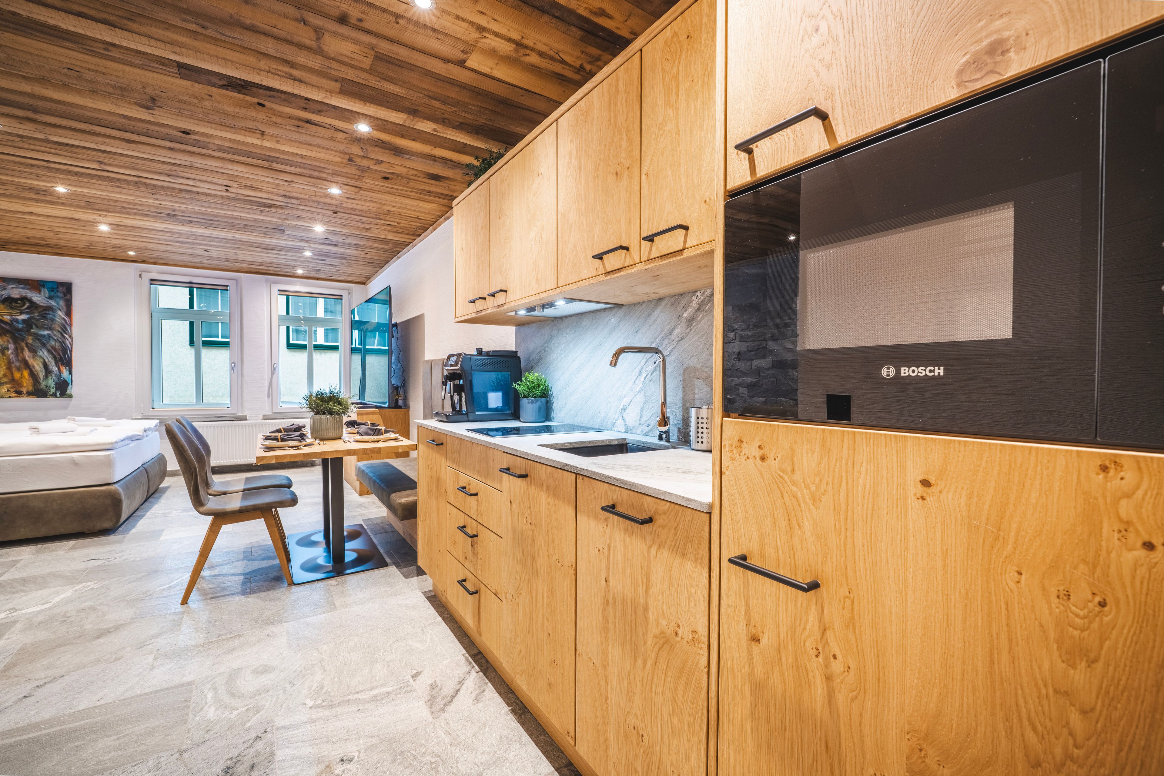 Die Unterkunft bietet Premium-Alpenstil mit modernem Komfort und verfügt über: stilvolles Wohn-/Esszimmer mit großem Smart-TV voll ausgestattete Küche mit hochwertigen Geräten komfortables Boxspringbett für erholsamen Schlaf elegantes Badezimmer mit Regendusche Kostenfreies WLAN Das Apartment eignet sich ideal für Paare, Familien und Aktivurlauber, die Wert auf Design, Komfort und zentrale Lage legen.