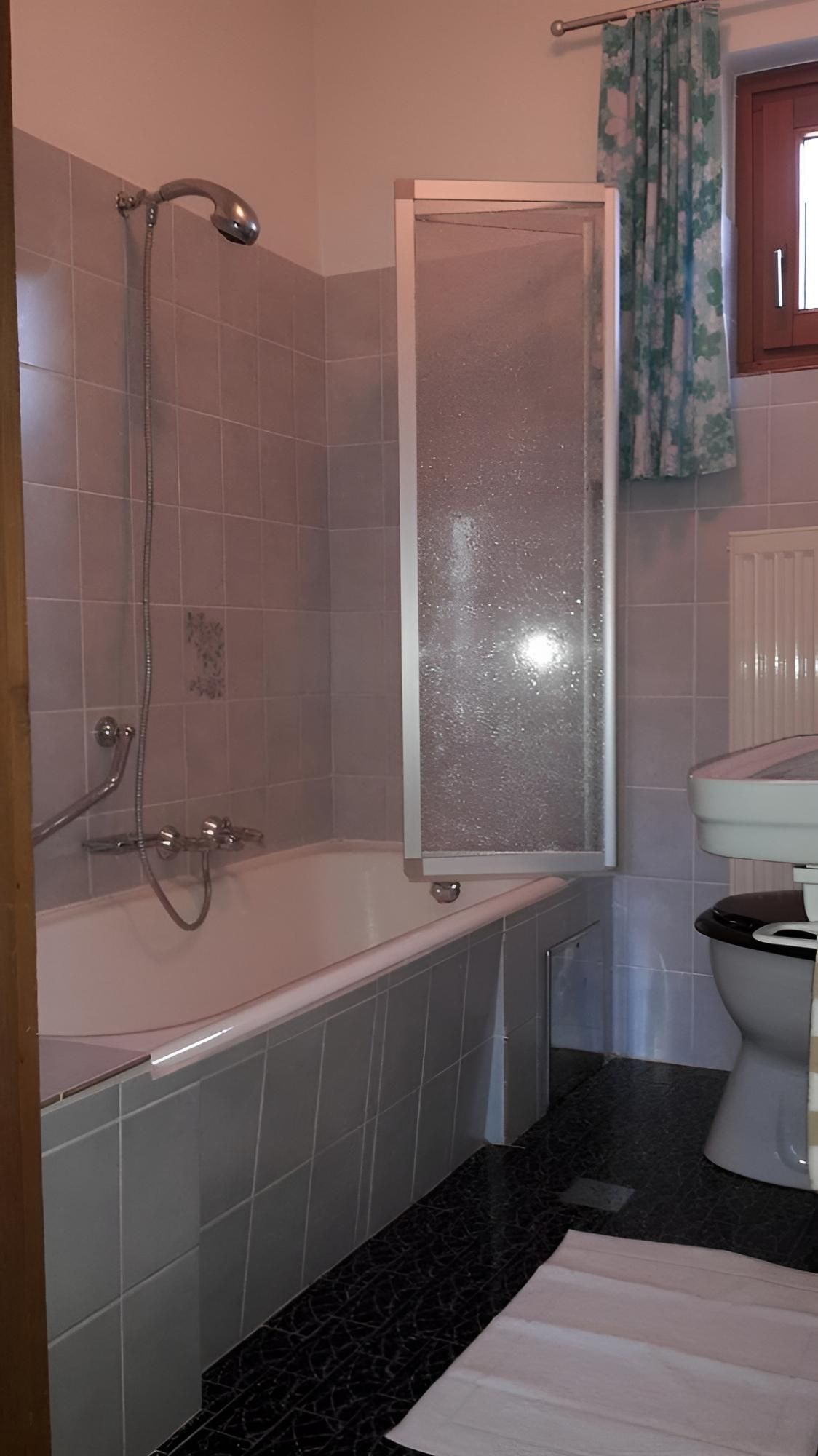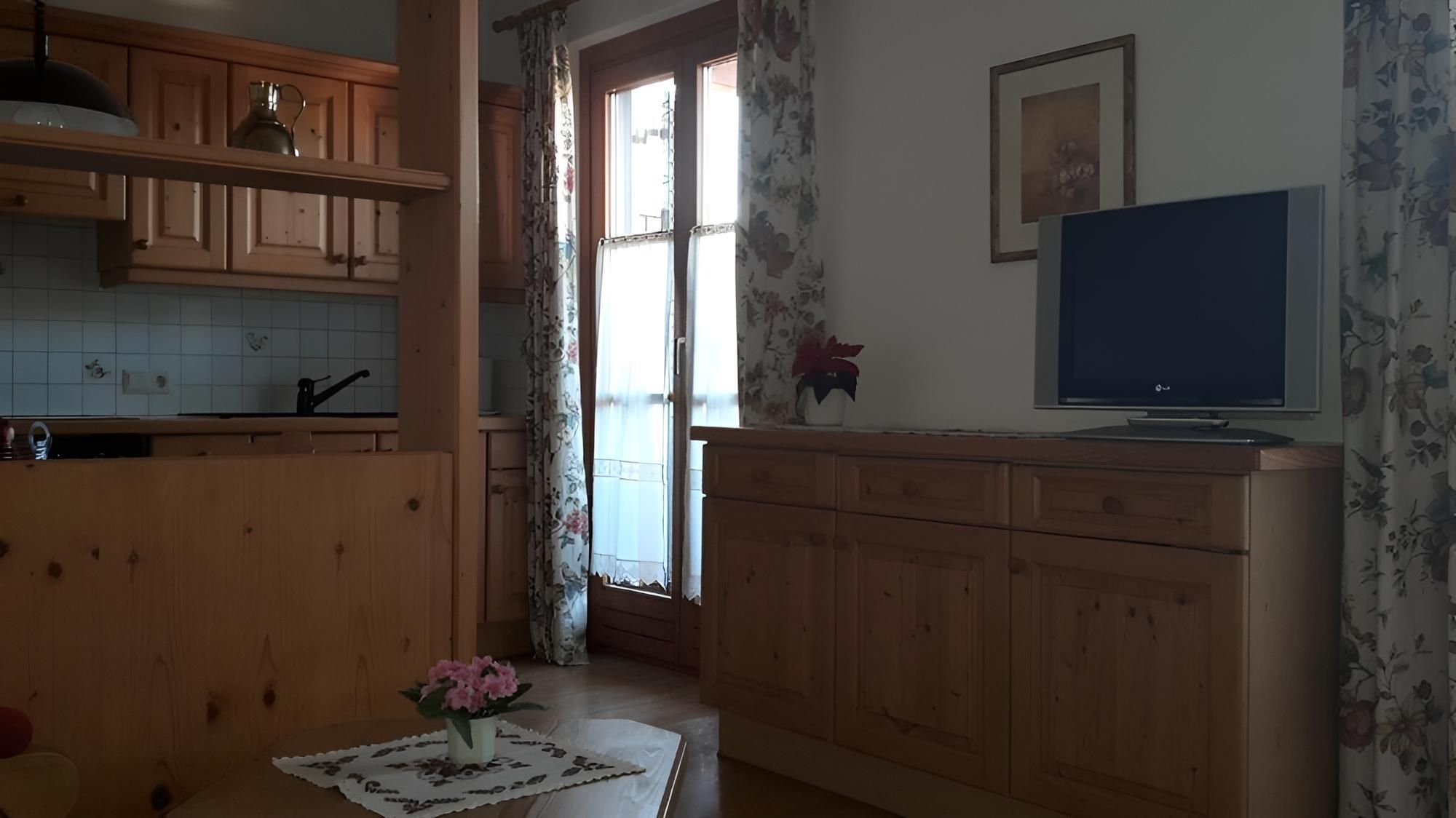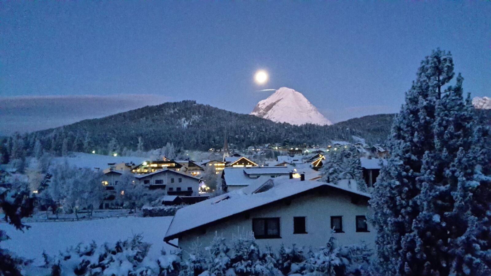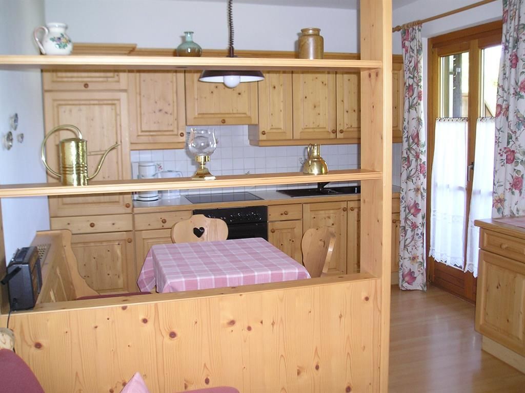 Wohnraum mit kompletter Küchenzeile und Essecke, Sofa, Schlafzimmer, über dem Gang (ca. 1 1/2 Meter) befindet sich das Bad/WC - nur zu Ihrer alleinigen Benutzung, Abstellraum, großer West-Balkon (ab Mittag bis zum Sonnenuntergang - Sonne), mit freiem Ausblick auf Seefeld und die umliegende Bergwelt. W-LAN kostenlos.