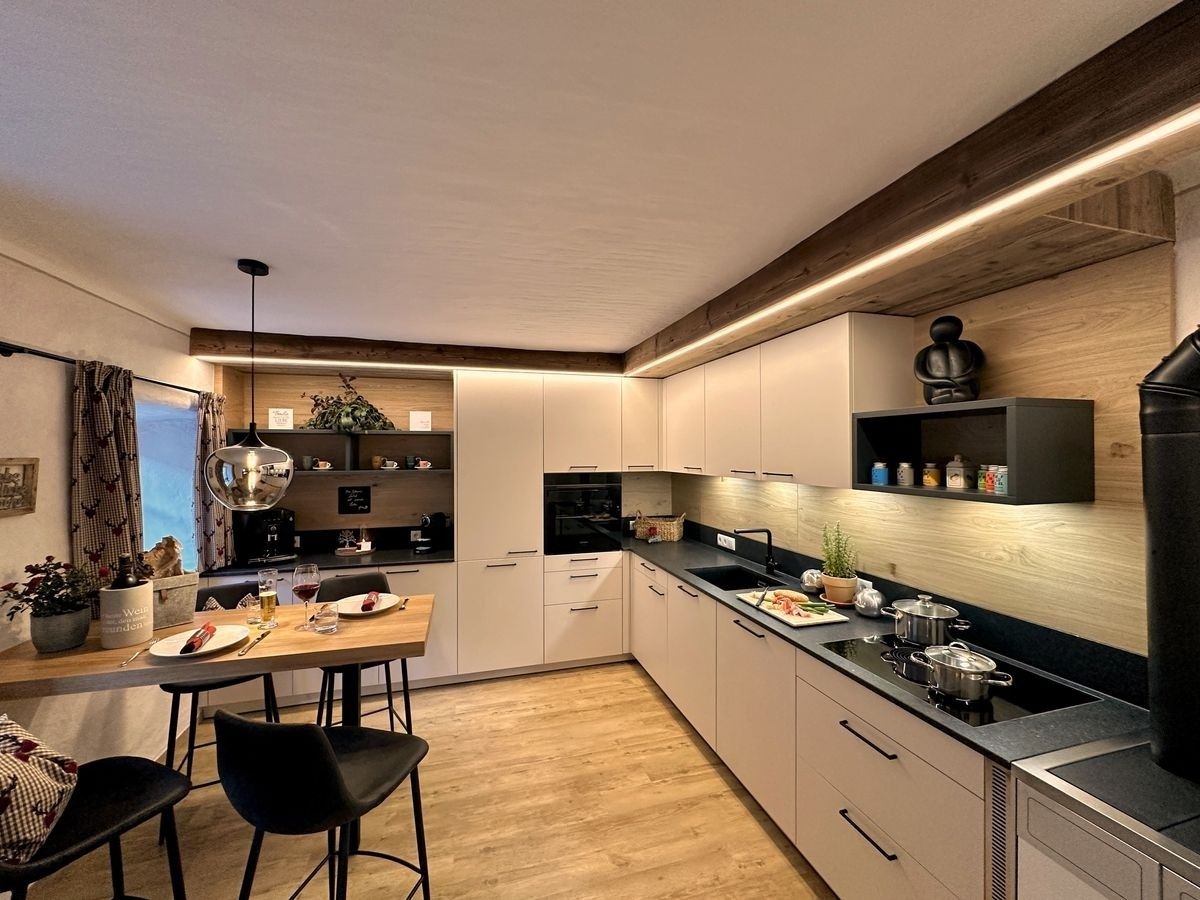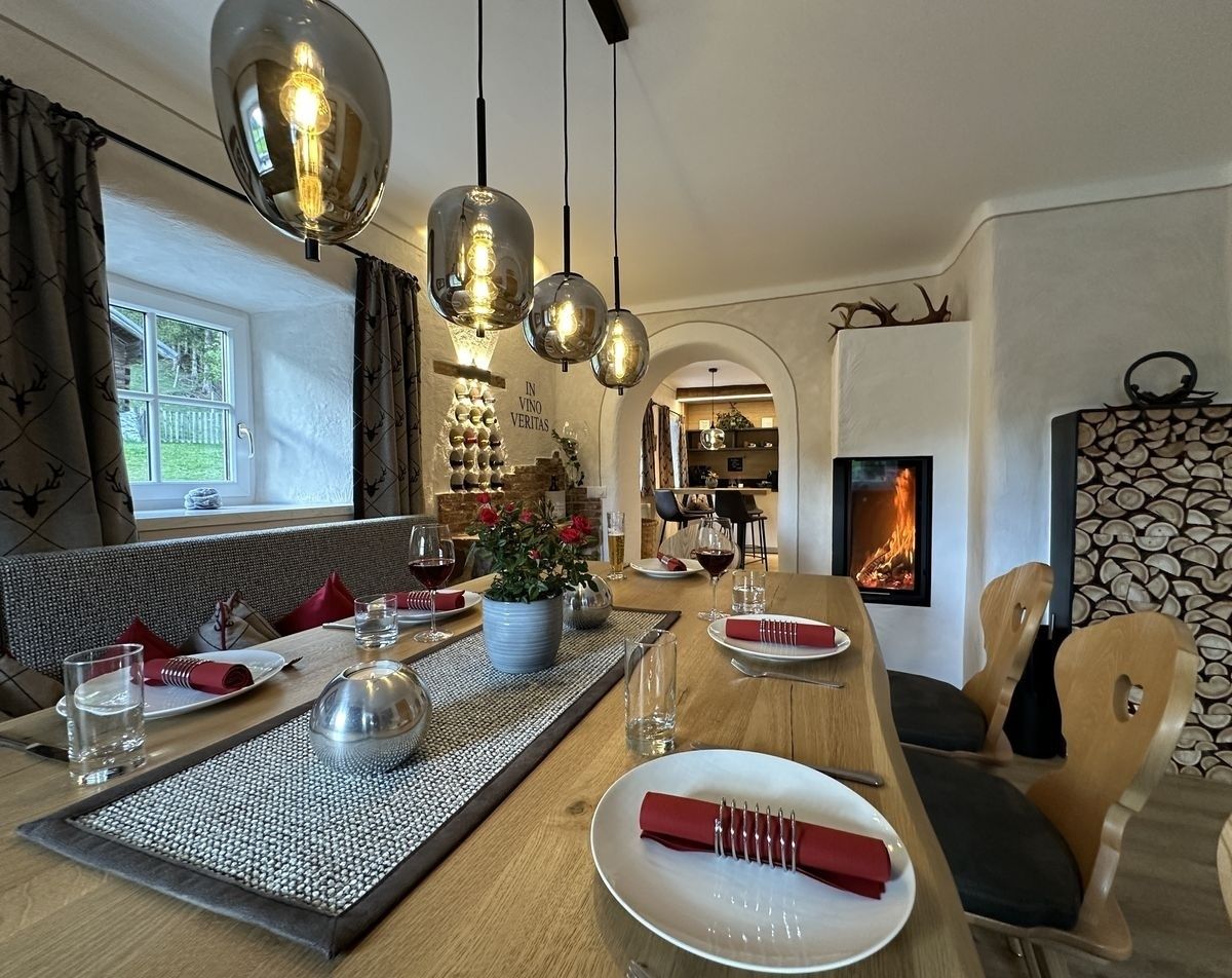 Die hochwertige und liebevoll ausgewählte Inneneinrichtung verbindet traditionelles Hüttenflair mit modernem Wohnkomfort. Natürliche Materialien, viel Holz und großzügige Räume schaffen eine besonders warme und einladende Atmosphäre – perfekt zum Abschalten und Genießen.