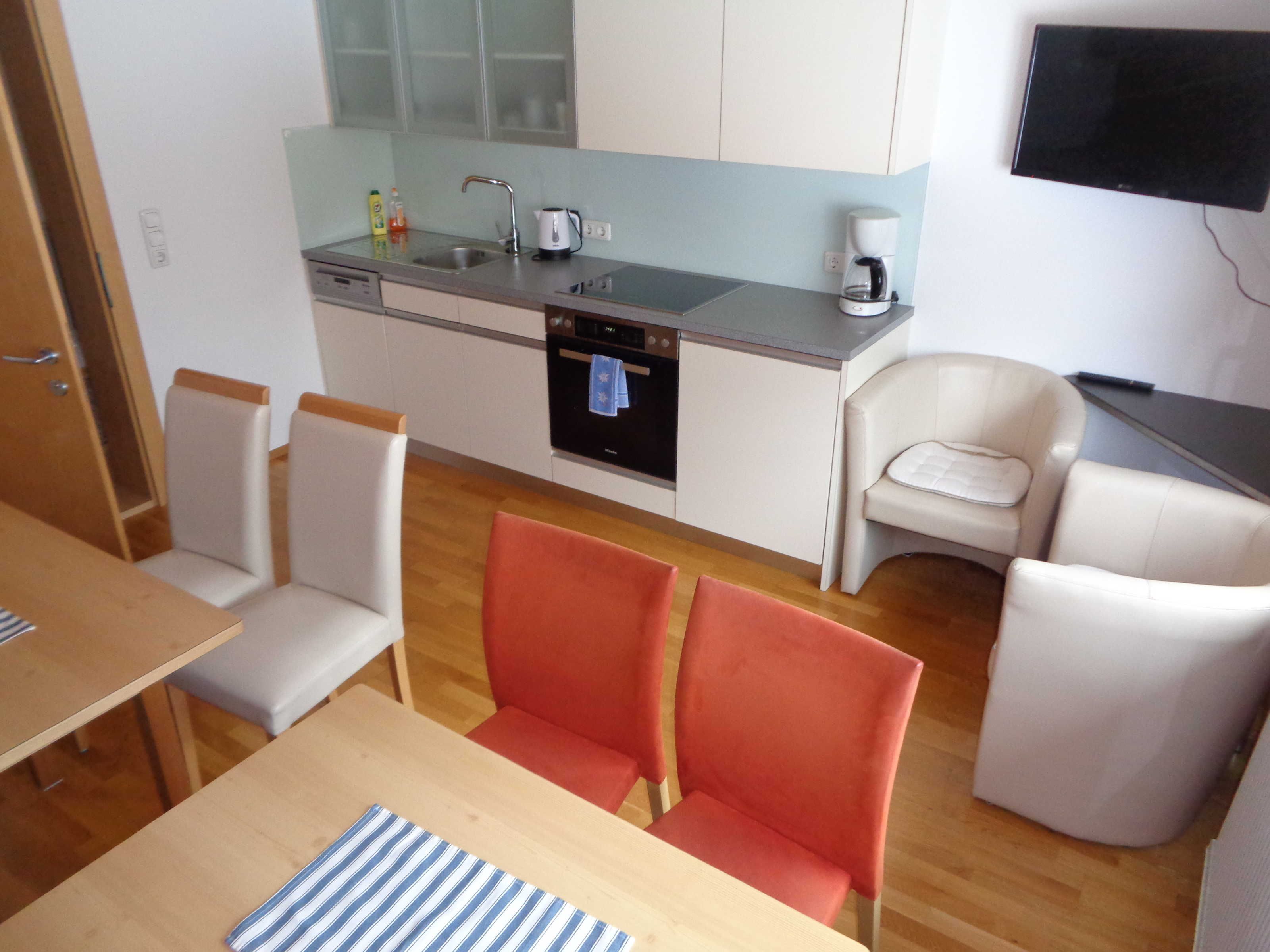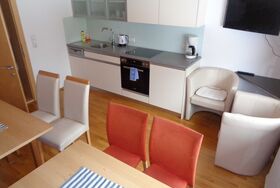 Die Ferienwohnung mit ca. 65m² verfügt über 2 Doppelzimmer mit Dusche/WC, ein Schlafsofa und Balkon, eine komplett ausgestattete Wohnküche mit Geschirrspüler, Kaffeemaschine, Kühlschrank mit Gefrierfach, Koch- und Essgeschirr, Küchentücher und schöner Essecke.