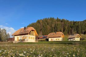 Drei Häuser. Ein Versprechen: Bei Ebner 1822 erleben Sie nachhaltigen Urlaub in handgebauten Ferienhäusern aus Holz, Stroh und Lehm – direkt am Teich, mit Blick auf die Karawanken. Hier trifft bäuerliche Tradition auf stilvollen Komfort: mit Holzofen, Lehmwänden, freistehender Badewanne und privater Wellnesskabine. Ideal für Paare, die Ruhe und Ursprünglichkeit suchen. Auf unserem Hof leben Hühner, Schafe, Kühe und Hund Paula, es gibt frische Eier und Selbstgemachtes je nach Saison. Der nahe Wald lädt zum Spazieren ein, die umliegende Natur zum Durchatmen. Einzigartig. Natürlich. Erholsam.