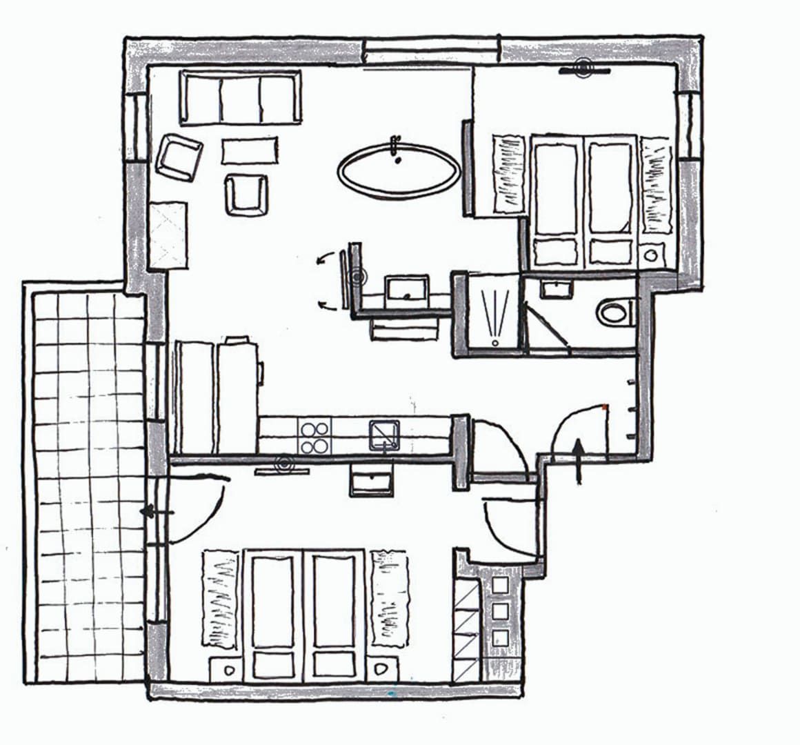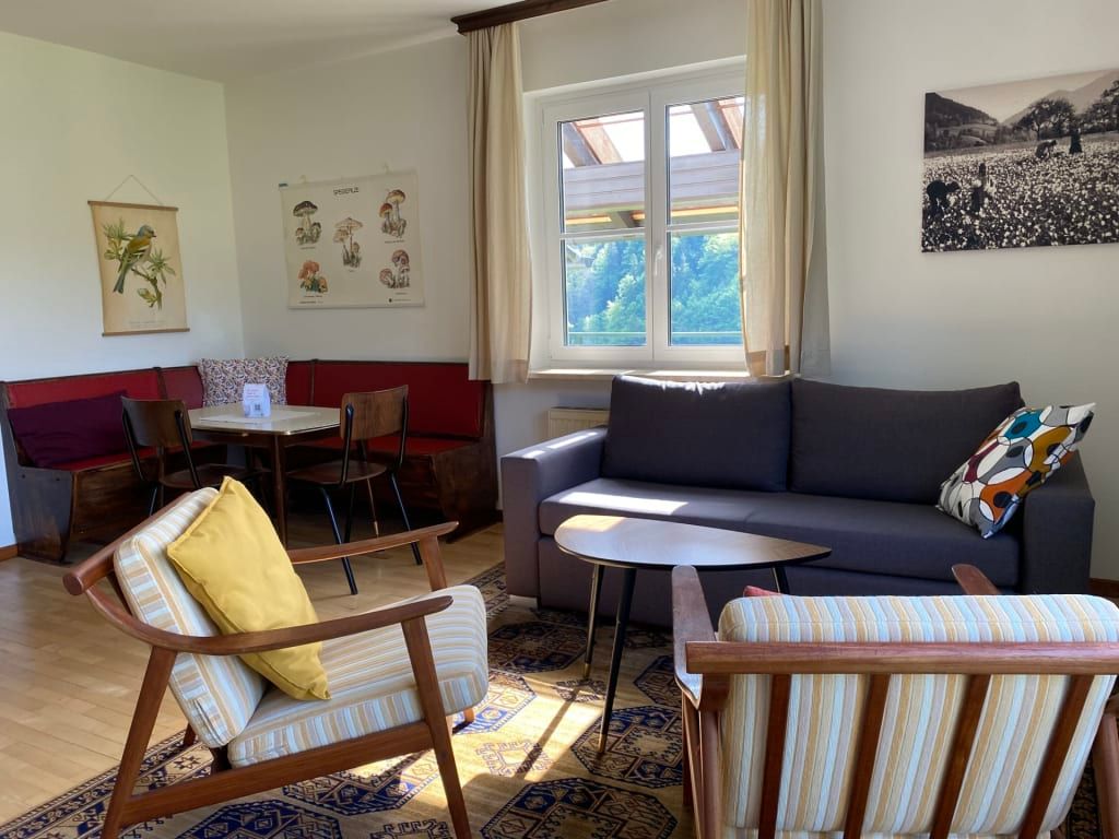 Das Apartment bietet genügend Platz für 4 Personen. Am überdachten Balkon können Sie am Morgen ihr Frühstück und den traumhaften Ausblick auf die umliegende Bergwelt der Ybbstaler Alpen geniessen.
