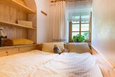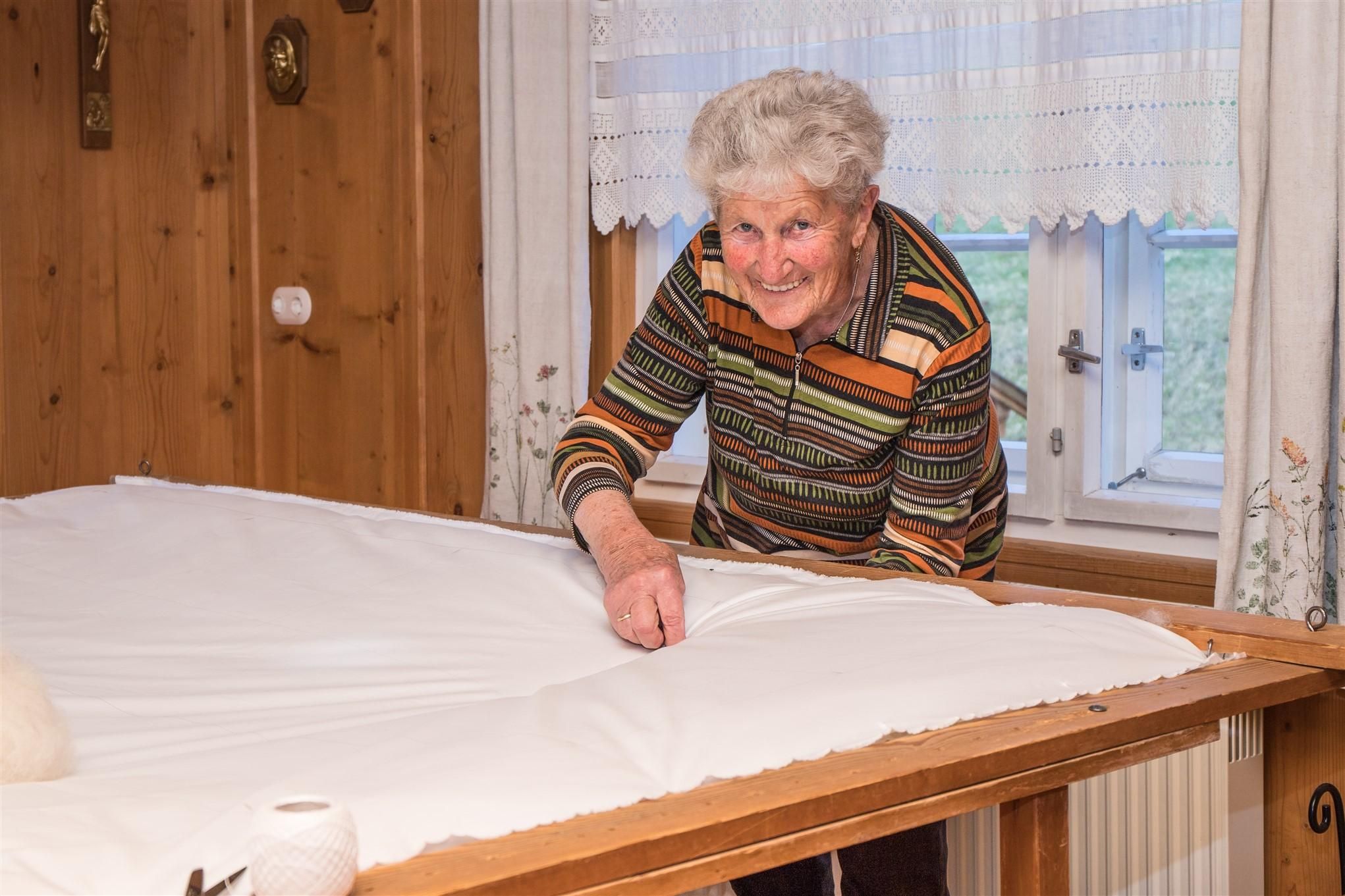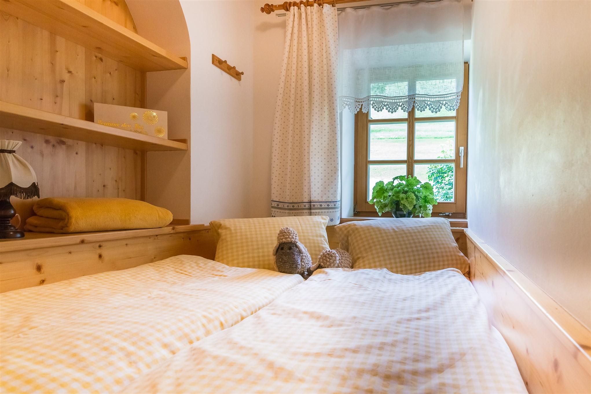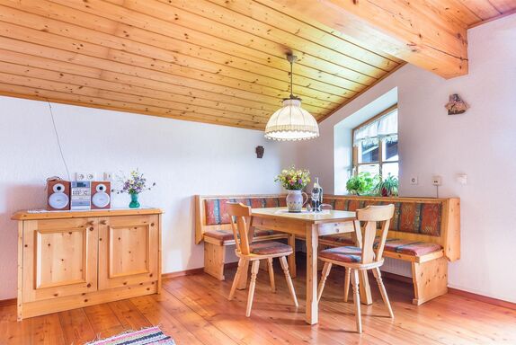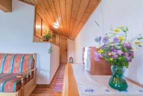 Die Ferienwohnung “Lumkofel” befindet sich im Dachgeschoss des Hauses und ist für max. fünf Personen geeignet. Das Wohnzimmer ist nach Süden ausgerichtet, mit direktem Zugang zum Balkon, von wo aus Sie eine herrliche Aussicht in die Karnischen Alpen und über einen Großteil des Lesachtales haben. Eine seperate Küche, Kaffeemaschine, SatTV und Telefon, sowie WLAN gehören zur Grundausstattung. An das Schlafzimmer schließt eine separate Schlafnische für Kinder an. Unsere Betten sind mit selbst hergestellten, kuscheligen Lesachtaler Schafwolldecken ausgestattet.