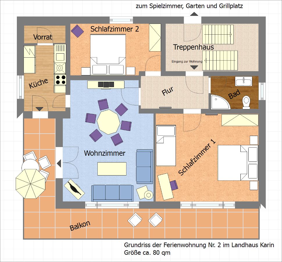 Die Ferienwohnung Nr. 2 (Mondraute) ist eine