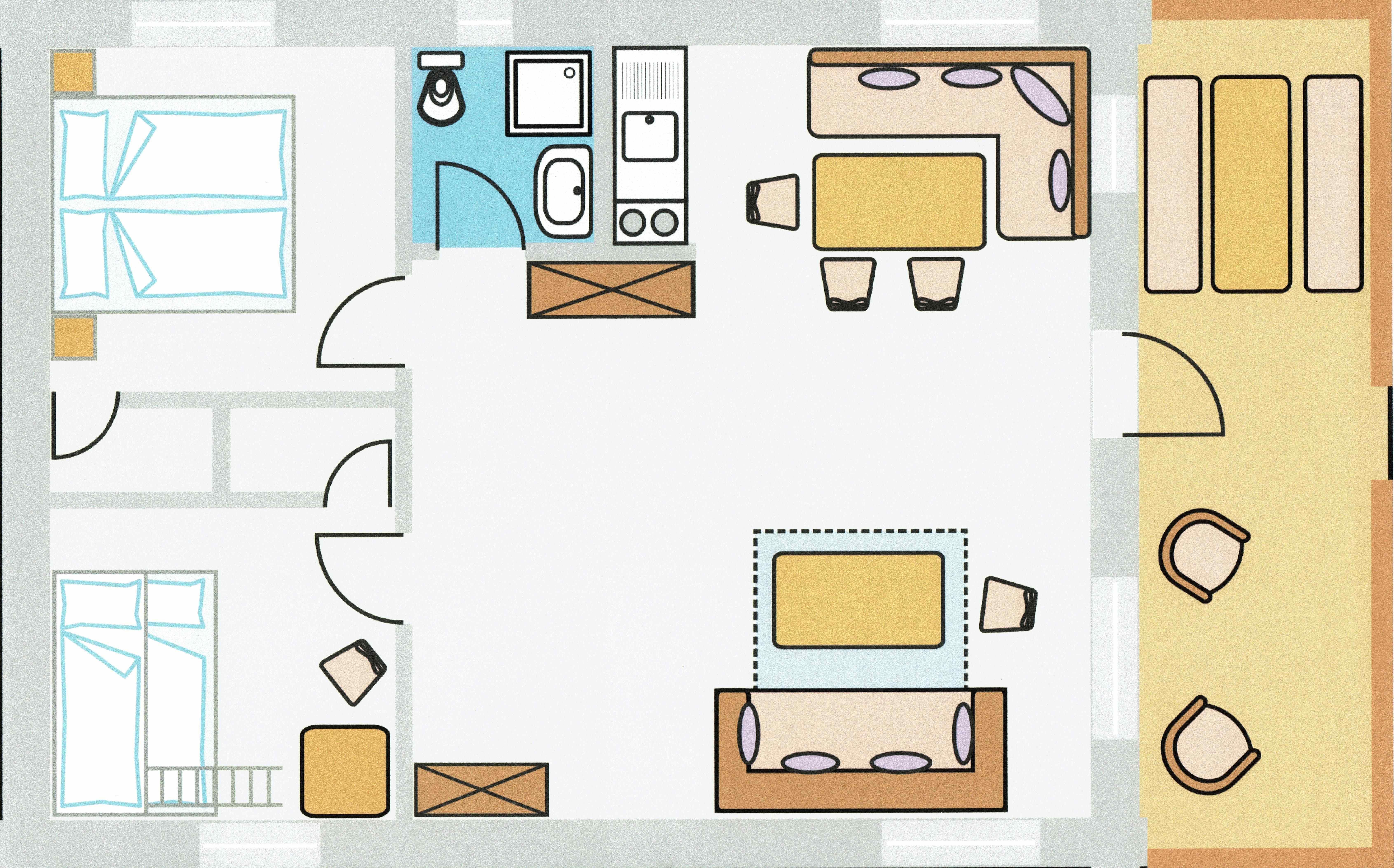 Die Bettenart in den Schlafzimmern unterscheidet sich je nach Apartment.