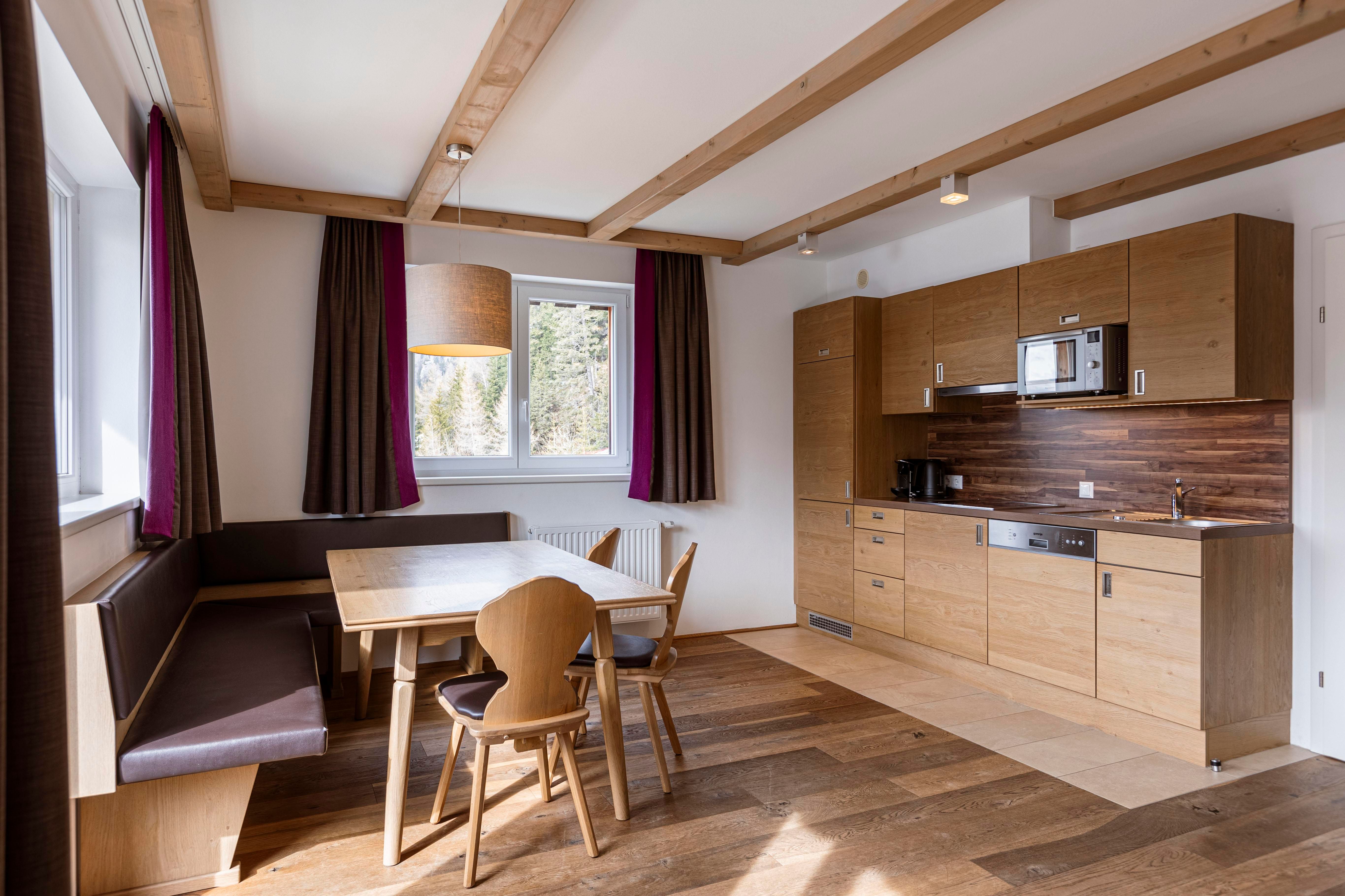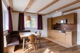 - Hochwertige und komplett ausgestattete Küche (teilweise mit Backrohr) mit Essbereich, Kuschelecke und Sat-TV