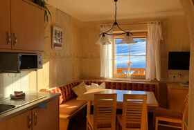 Gemütliches Appartement mit 2 Schlafräumen , voll eingerichtete Wohnküche mit Sonnenterasse , 2 Badezimmer und separate Toilette. Die voll ausgestattet Küche verfügt über Backofen, Mikrowelle, Geschirrspüler, Kühlschrank mit Eisfach, Espressomaschine, Wasserkocher und ausreichend Geschirr und Besteck. Für Bettwäsche, Handtücher ,Geschirrtücher sowie Saunatücher ist natürlich gesorgt. Diese Wohnung verfügt über Balkon und Terrasse mit Blick auf unserer wunderschöne Bergwelt. Das Appartement befindet sich auf der 1. Etage. Unser Haus befindet sich direkt an der Skipiste in sonniger ruhiger und doch zentraler Lage!