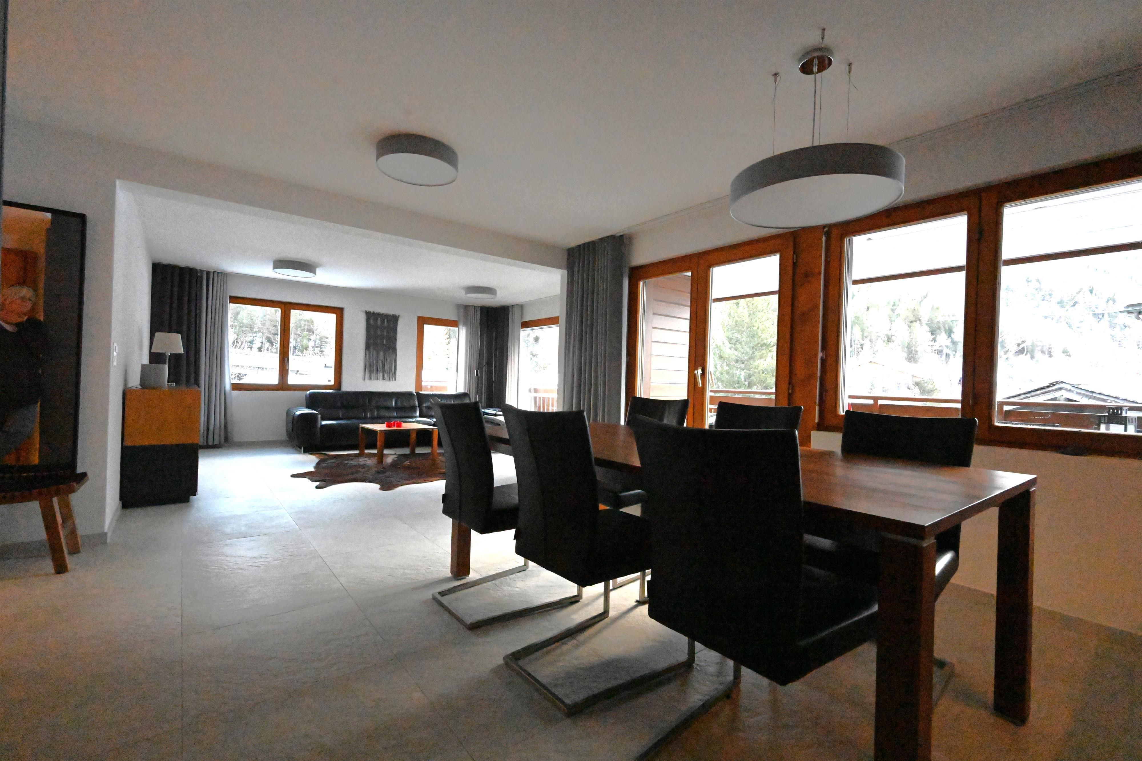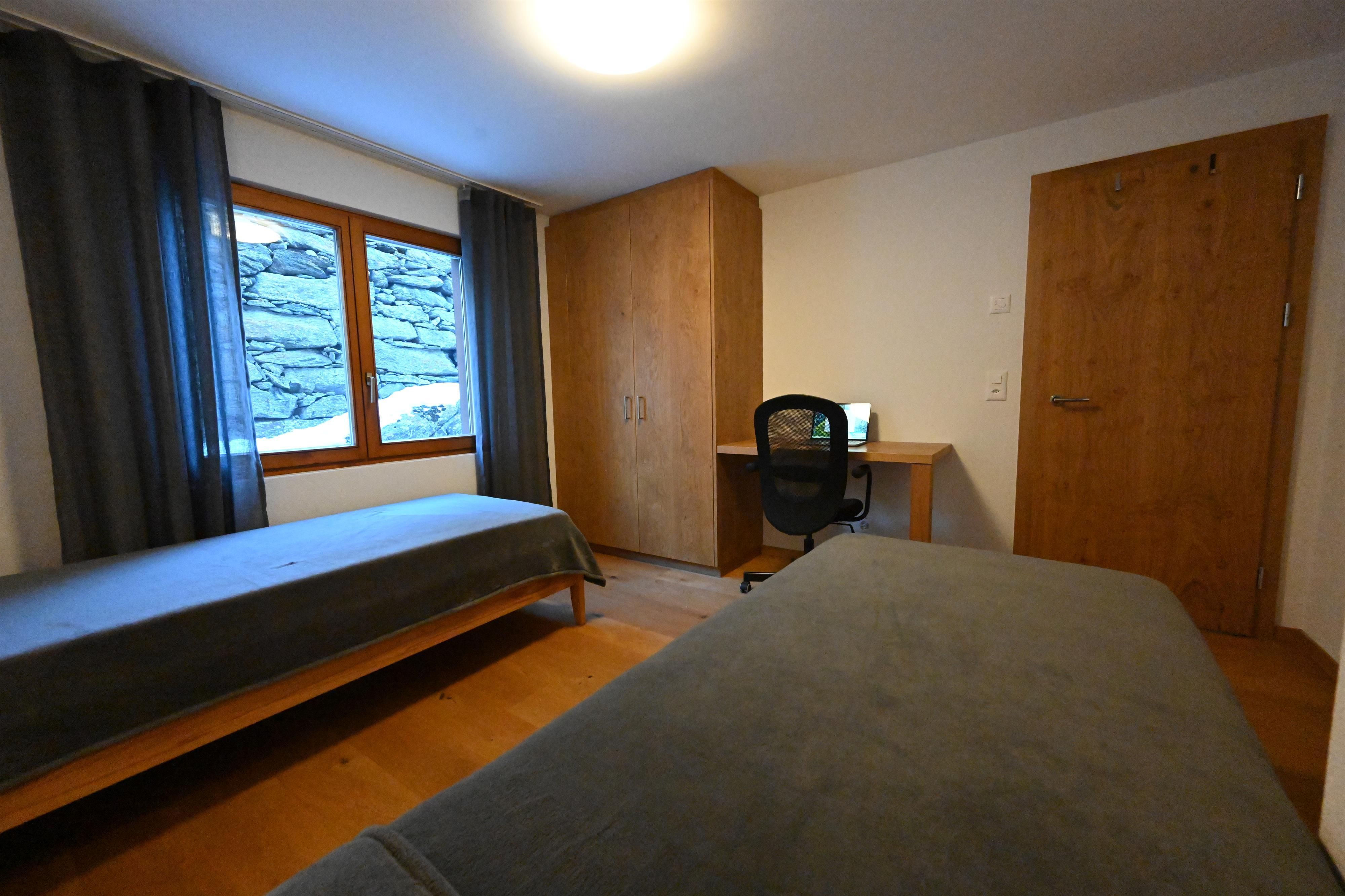 Die moderne und grosszügige Wohnung im 2. OG verfügt über 3 Schlafzimmer und 2 Badezimmer. 2 Schlafzimmer verfügen über ein Doppelbett (180cm) und das 3. Schlafzimmer verfügt über 2 Einzelbetten plus ein Pult, ideal für Home office. Das grosszügige Wohnzimmer liegt neben der modernen, offenen Küche mit Essbereich.