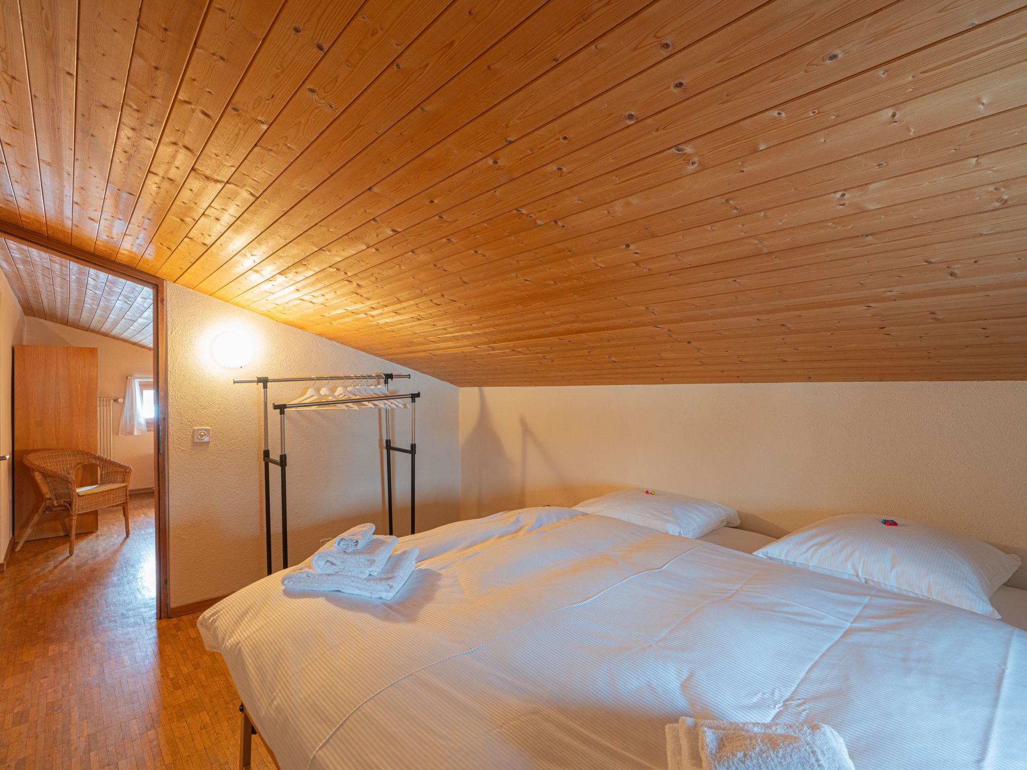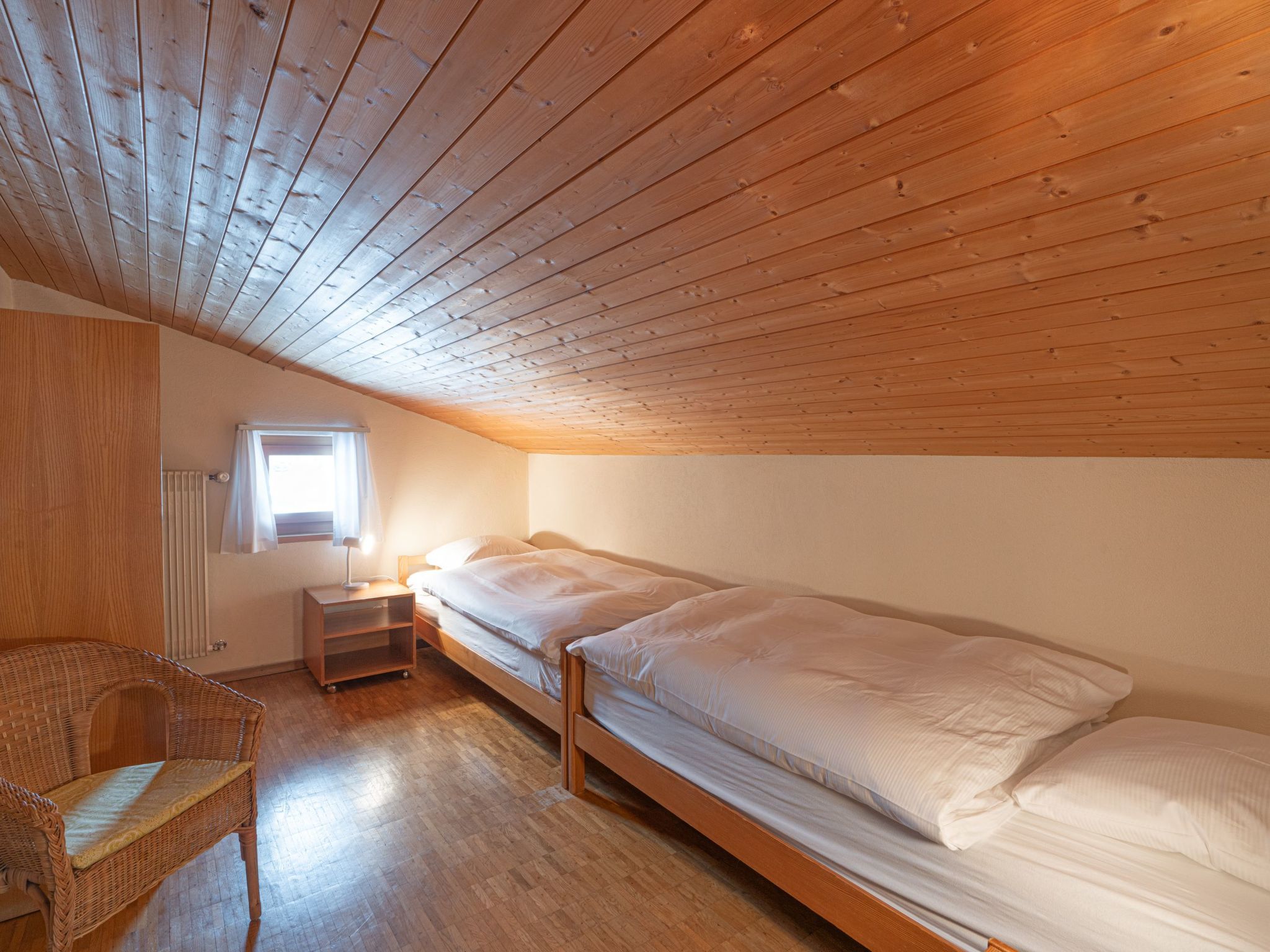 Einfaches Feriendomizil, das für Familien von bis zu 6 Personen geeignet ist. Schöner Blick auf die Silserebene und den Silsersee. Die Lage ist sehr ruhig. Die Wohnung deckt den Grundkomfort ab, ist aber sauber und gepflegt. Es gibt 1 Doppelschlafzimmer mit Teppichboden. Zwei weitere Zimmer befinden sich unter der Dachschräge. Ein Doppelzimmer, das gefangen ist und über das Zimmer mit 2 Einzelbetten zugänglich ist. Es gibt 1 Badezimmer mit dem nötigen Grundkomfort. Die Einrichtung weist Gebrauchsspuren auf. Vor dem Haus gibt es einen reservierten Aussenparkplatz. Sils - Eine Bereicherung für Körper, Geist und Seele Sils ist ein Kraftort. Das lässt sich sogar messen. Aber wozu, wenn man der Magie der Landschaft ohnehin auf den ersten Blick verfällt? Schriftsteller wie Nietzsche, Künstler wie Beuys und Musiker wie David Bowie liessen sich von der fantastischen Weite und diesem zauberhaften Licht inspirieren und trugen dazu bei, dass Sils heute als DER Kulturort im Engadin gilt. Gäste aus aller Welt und die Einheimischen bezeichnen Sils nicht ohne Stolz und mit gutem Grund als Energie- und Kraftort. Denn hier wurden besonders hohe «Boviswerte» gemessen. Idyllisch eingebettet zwischen Silser- und Silvaplanersee, liegt das Dorf am Tor zum romantischen Fextal und ist der perfekte Ausgangspunkt für Spaziergänge in der Weite dieser sonnendurchfluteten Landschaft. Im Winter lässt sich das Fextal am Besten mit dem Pferdeschlitten erkunden. Wer höher hinaus möchte, findet auf dem Hausberg Furtschellas abwechslungsreiche Wander- und Bergtouren. Und bei einer Fahrt auf dem Silsersee mit Europas höchstgelegenem Kursschiff lässt sich die Bergkulisse besonders eindrücklich geniessen. Sils ist aber auch ein perfekter Ausgangspunkt für Winterwanderungen und Langlauftouren durch die Weite der gefrorenen Seen, die sich vertrauensvoll an den Hausberg Furtschellas schmiegt. Von diesem aus ist man schnell noch weiter oben – auf dem Corvatsch mit der höchstgelegenen Bergstation der Ostalpen (3303 m ü. M.). Und von dort führen 120 ganz schön sportliche Pistenkilometer zurück ins Tal. Diese Berge. Diese Seen. Dieses Licht! Auf 580 Kilometer Wanderwegen über alle Berge oder mit dem Mountainbike auf 400 Kilometern Genuss-Trails: Das Oberengadin bietet ein hochklassiges Netz an Wanderwegen und Mountainbike-Trails inmitten der ursprünglichen Bergwelt und der inspirierenden Oberengadiner Seenplatte. Für den richtigen Flow sorgen die vier Flowtrails auf der Corviglia. Ebenfalls sportbegeistert zeigen sich die Oberengadiner Seen. Kiten, segeln, windsurfen, stand up paddling: die Möglichkeiten sind schier unbegrenzt. Die Weite des inspirierenden Hochtals lässt sich auf den beiden 18-Loch-Golfplätzen in Samedan und Zuoz besonders eindrücklich erleben. Und neben den vielfältigen Sportmöglichkeiten locken hochklassige kulturelle Angebote wie ein Besuch im Museum oder in den zahlreichen Kunstgalerien in den verschiedenen Dörfern. Im Winter laden 350 feinste Pistenkilometer der Skigebiete Corviglia, Corvatsch, Diavolezza und das familienfreundliche Zuoz zu wahrem Ski- und Snowboardvergnügen ein. Langläufer finden über 220 km präparierte Loipen im Oberengadin und in den Seitentälern. Die Winterwanderwege und Langlaufloipen auf den zugefrorenen Oberengadiner Seen glänzen mit Licht, Sonne und Weite inmitten einer inspirierenden Bergwelt. Wer die Stille und Schönheit der verschneiten Wälder geniessen möchte, wandert auf den 150 km Winterwanderwegen in die Seitentäler Val Roseg, Val Fex oder Val Bever, wer lieber den Überblick hat, geniesst atemberaubende Aussichten auf den Panoramawanderwegen hoch über den Seen auf Muottas Muragl. Familien geniessen die Engadiner Sonne bei einer Kutschenfahrt ins Val Roseg oder Val Fex, oder schlitteln auf der 4.2km langen, kurvenreichen Schlittelbahn Muottas Muragl ins Tal hinab. Herzlich willkommen im Engadin. Basisinformationen - Erlaubte Haustiere: keins - befindet sich in: Wohnsiedlung - Art d. Wohnung: Dachgeschoss - Art d. Gebäudes: Mehrparteienhaus - Etage, auf der sich das Objekt befindet: OG2 - Gesamtanzahl d. Stockwerke im Gebäude über EG: 2 - Grundstücksfläche: 400 m² - Baujahr: 1970 - letzte umfassende Renovierung: 2024 - freistehend - Schlafzimmeranzahl: 3 - Badezimmeranzahl: 1 Top Merkmale - WLAN - Klimaanlage: keine - Heizung: überall - Fußbodenheizung: keine - Garten: zur gemeinschaftlichen Nutzung - Private PKW-Stellplätze insgesamt für diese Unterkunft: 1 - ㄴ davon Garagenstellplätze: keinen - ㄴ davon private Außenstellplätze: 1 - Entfernung kostenfreie Gemeinschaftsparkplätze oder Parken an der Straße: 300 m - Entfernung öffentliches Parkhaus: 300 m Schlafen Schlafzimmer 1 - Doppelbett (1,80m Breite) - Schlafzimmer abdunkelbar Schlafzimmer 3 - Doppelbett (1,80m Breite) - Schlafzimmer abdunkelbar Schlafzimmer 5 - 2x Einzelbett - Schlafzimmer abdunkelbar Badezimmer Badezimmer 1 - Dusche - Badewanne - Waschbecken - Toilette - Föhn - Tageslicht Kochen/Wohnen - Kaffeemaschine: Kapsel-Kaffeemaschine - Kühl-/Gefrierschrank: Gefrierfach, Kühlschrank - Herd: Glaskeramikkochfeld, Elektroherd - Dunstabzugshaube - Backofen - Toaster - Wasserkocher - Spülmaschine - Geschirrtücher - Größe der Küche: 3 m² - Anzahl Esstische: 1 - Gesamtzahl Sitzplätze: 6 - Wohnzimmer abdunkelbar - Kamin Entertainment - Fernseher: TV Für Kinder - Kinderstuhl Hauswirtschaft - Waschmaschine: zur gemeinschaftlichen Nutzung im Gebäude - Wäschetrockner: zur gemeinschaftlichen Nutzung im Gebäude - Staubsauger - Ventilator: keinen - Einzelne Öfen / Heizlüfter / Radiatoren Nachhaltigkeit - Abfallrecycling - Bioabfall verfügbar Umgebung - Aussicht: Berg, Meer/See, Garten, Wald, Wiese, Tal - nächstgelegene Ortsmitte: 200 m - Lebensmittelhandel: 200 m - Bars/Clubs/Ausgehen: 200 m - Cafés/Restaurants: 200 m - Bahnhof: 10,0 km - Flughafen: 15,0 km - Autobahn: 60,0 km - nächste Haltestelle ÖPNV: 200 m - Wasser (Meer, See etc.): 500 